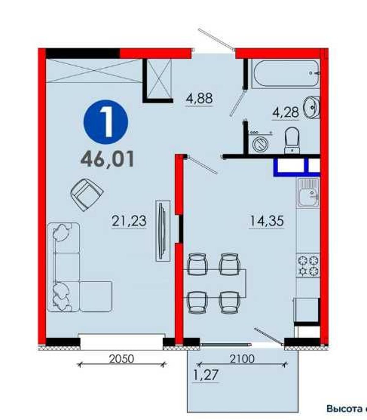Новостройка от крупного застройщика, Новый Узб. 1/4/7, 46 кв (НБ)