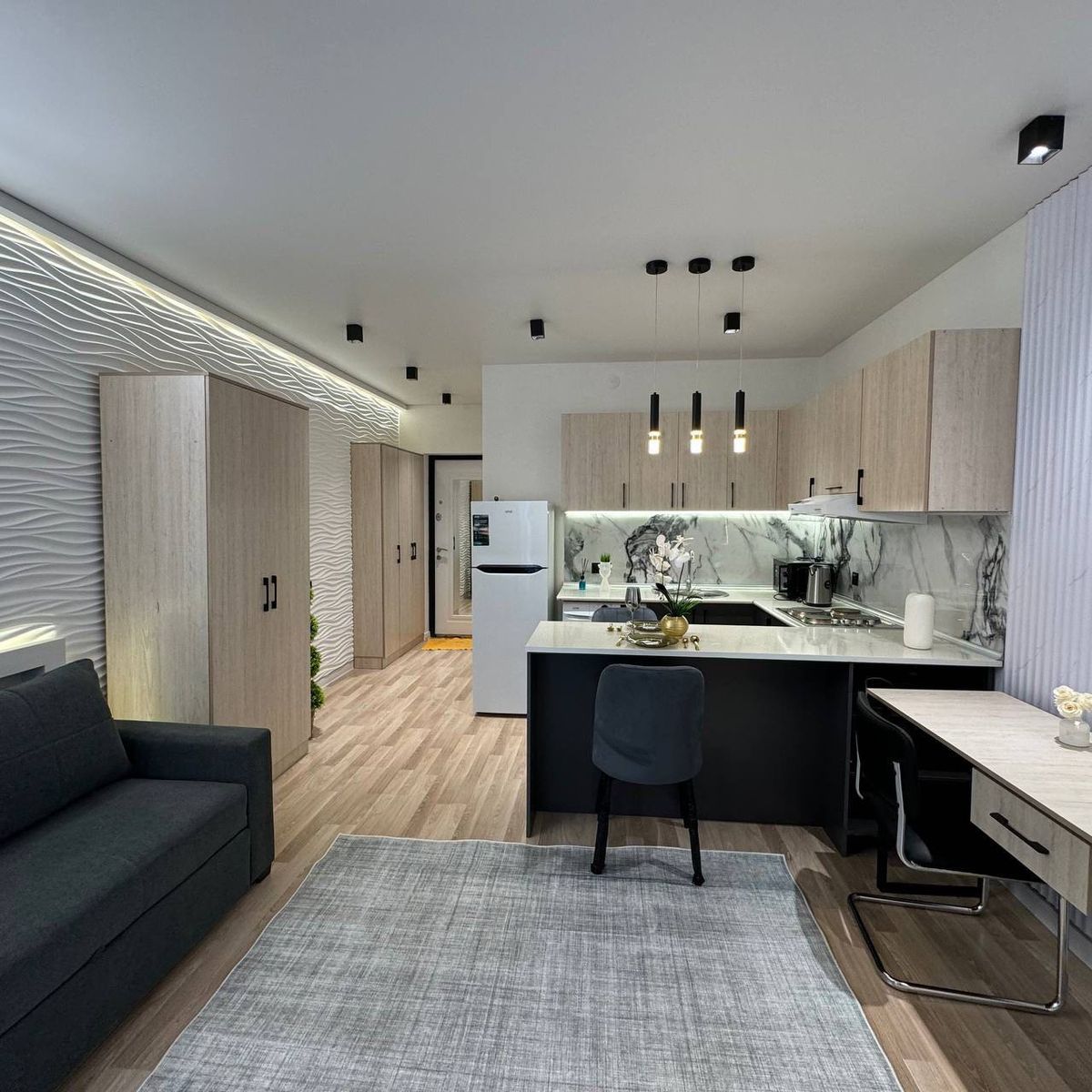 Продается 1-комнатная квартира в новостройке,1/4/14-58 000 у.е, на ул.Махтумкули, ЖК Besh Chinor. Ориентир: IT парк. Монолитный дом, 28 м². Ремонт, мебель,техника.