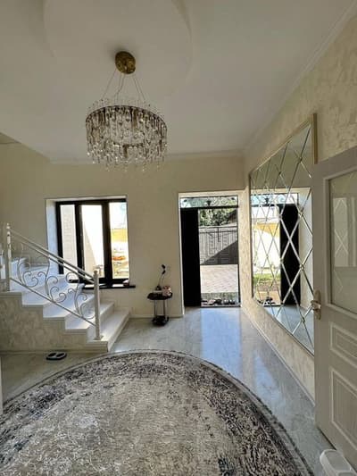 1,5 соту, 140 кв.метр, 2-этажлик… тоза 5 та, ундан ташкари 1 та котта кухня, 2 та холл, 1 та подвал, 2 та санузель… 1 та мошина бемалол сигади… зеленый зонаси бор… бутун уй тёплый пол