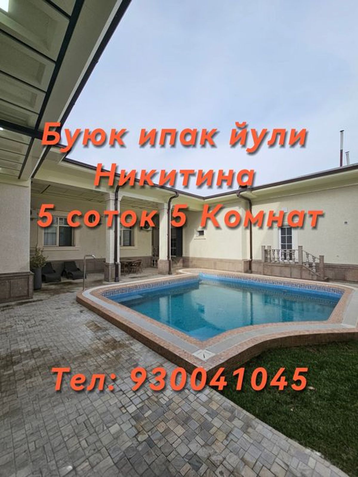 Мирзо Улугбекский район Никитина, Буюк Ипак Йули Продается дом! 5 комнат (3 спальни, холл, гостиная) (2 саузла дома, + 1 на улице) 5 соток, 340м Заезд на 1 машину Бассейн открытый (подогрев) Сауна Подвал под бар Цена 550.000 Лот 200483 +998930041045 Евгений