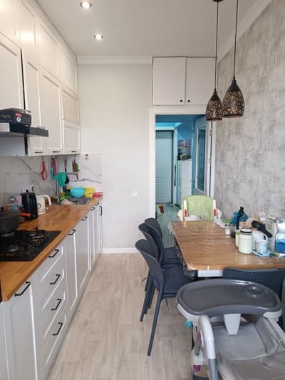 Продается своя уютная квартира, ремонт требует небольшой косметики. Квартира торцевая но утеплённые, радиаторы все свежие, техника и материалы использовались качественные. Кухня встроенная мебель, крашенный МДФ, есть все для удобства, фильтр для воды, посудомойка и.т.д. В квартире 3 кондиционера, почти все остаётся в квартире, удобства 9 - го этажа в том что над вами никто не бегает) Подьез закрытый с домофоном.