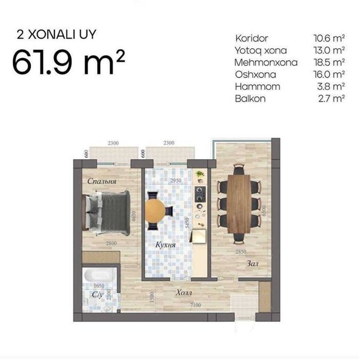 Янги қурилиш (новостройка) Хоналарга бўлинган. Оқ шувоқ холатда.