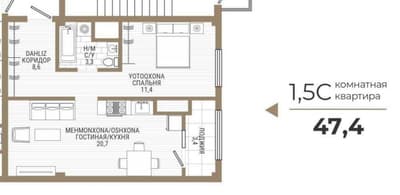 2/8/12 квартира коробка в ЖК Koh Ota на Ул Нурафшан