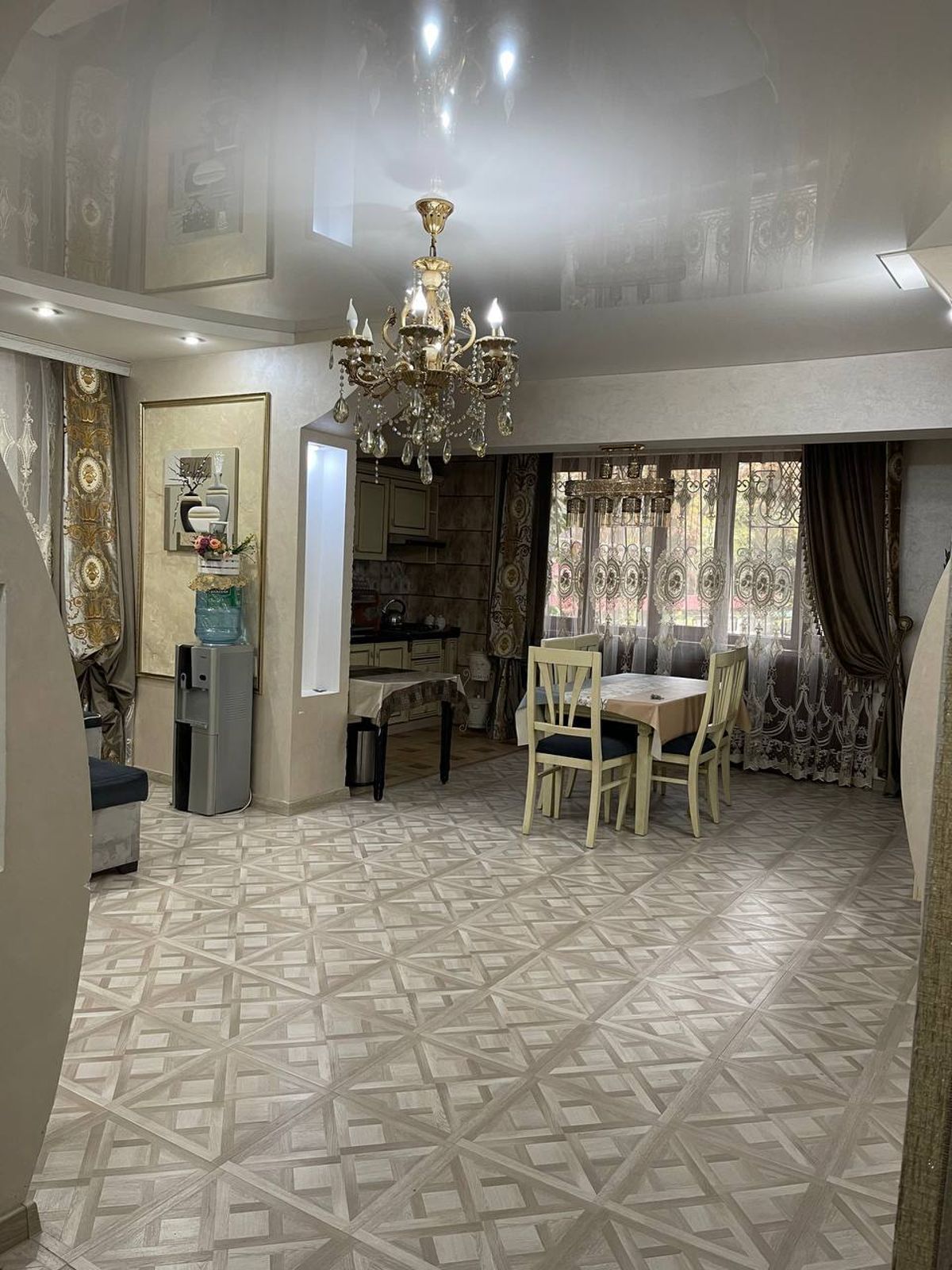 Сдаётся квартира в СОВМИН ДОМЕ восле метро Космонавты #Ориентир - МВД Корзинка #Город - Ташкент #Район - Яккасарай 5-комнатная 150 м2 1-этаж парковкой на 4 места 4-этажка