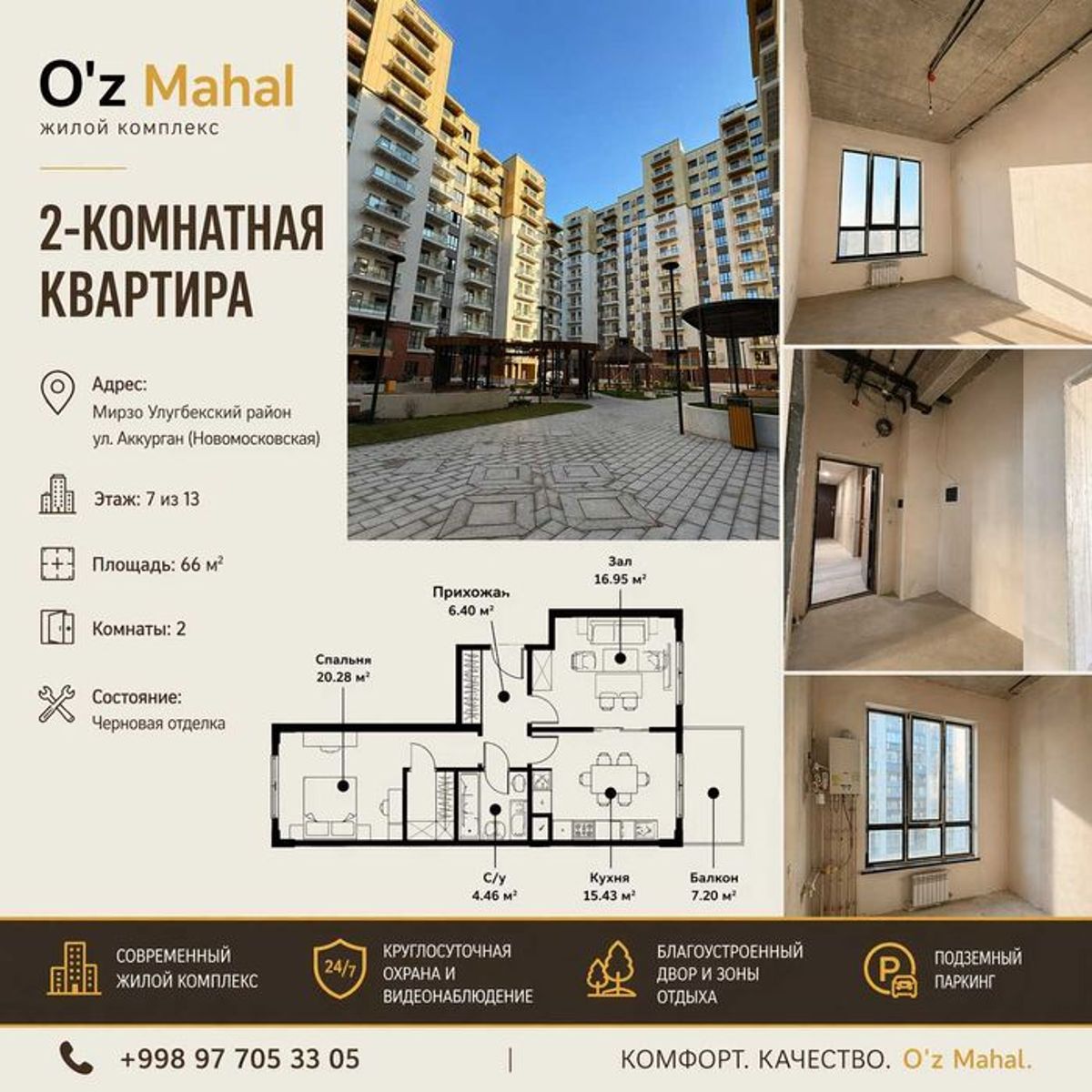 Мирзо-Улугбекский район, ул. Аккурган (Новомосковская) Площадь: 66 м² Этаж: 7 из 13 Состояние: коробка (идеально под ваш дизайн) Преимущества: — Современный жилой комплекс — Закрытый двор и зоны отдыха — Подземный паркинг — Круглосуточная охрана и видеонаблюдение — Отличная локация с развитой инфраструктурой Отличный вариант как для себя, так и под инвестицию +998977053305