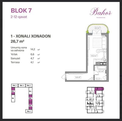 1 комнатная под котлаван ЖК Bahor
