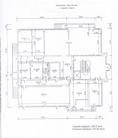 Мирзо Улугбекский район улица Буюк Ипак Йули пересечение с ул.Тантана недалеко от метро Буюк ипак Йули,Центр Луначарского, махалля Ахмада Югнакий ,массив Феруза Продаётся: Первая линия на первом этаже 9 ти этажного дома в помещение можно сделать шесть отдельных выхода. Общая площадь: 364 м² Количество санузлов: 6 ремонт: требуется Район имеет развитую инфраструктуру: Больницы поликлиники, школы, детские сады, магазины супермаркеты, развлекательные заведение. Помощь в проведении сделки. Оперативный показ. Собственника недвижимости представляет: ООО «GOLD REAL ESTATE» лицензия гос. Ком. Конкуренции rl 001 №0041