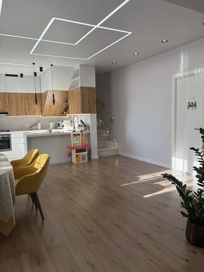 Продаем свою уютную квартиру для семьи со всеми продуманными деталями для счастливой жизни. Сами создавали ее для себя. Первый уровень просторная студия, где все на виду, но при этом никто друг другу не мешает. Второй уровень для отдыха: 2 спальни и 2ой санузел. Также имеется отдельная прачечная (стиральная и сушильная машины). Во всех комнатах кондиционеры, в спальнях - очистители воздуха. Теплый пол в санузлах, на кухне и в коридоре. Фильтр на основной магистрали воды, а также отдельный фильтр для питьевой воды. Встроенная посудомоечная машина. Окна выходят на детскую площадку, двор без машин. Дети спокойно гуляют во дворе. Территория жк большая с прогулочной аллеей и спортивными тренажерами. Вход в жк по фэйс айди. Ремонт и техника все новое, прожили чуть больше полгода. Продаем, так как пришло время расширяться. Торг при осмотре квартиры. П.С. Солнце светит в окна только утром.