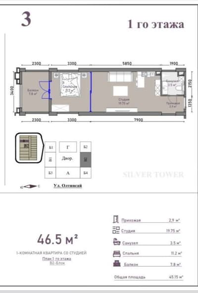 Продаётся квартира в Алмазарском районе ЖК «Silver Tower» Застройщик: Better Best Параметры квартиры • Комнат: 2 • Этаж: 1 • Этажность дома: 20 • Блок: B2 • Площадь: 46,5 м² • Состояние: черновая отделка Локация Ориентир: Каракамиш 1/2, клиника Ibatov’s Clinic Статус объекта • Дом в стадии завершения • Кадастр выйдет 2 квартал 2026 года Цена 750 $ за 1 м² СРОЧНО! СРОЧНО! +998901033333 Ибодулла +998971177775 Шахбоз