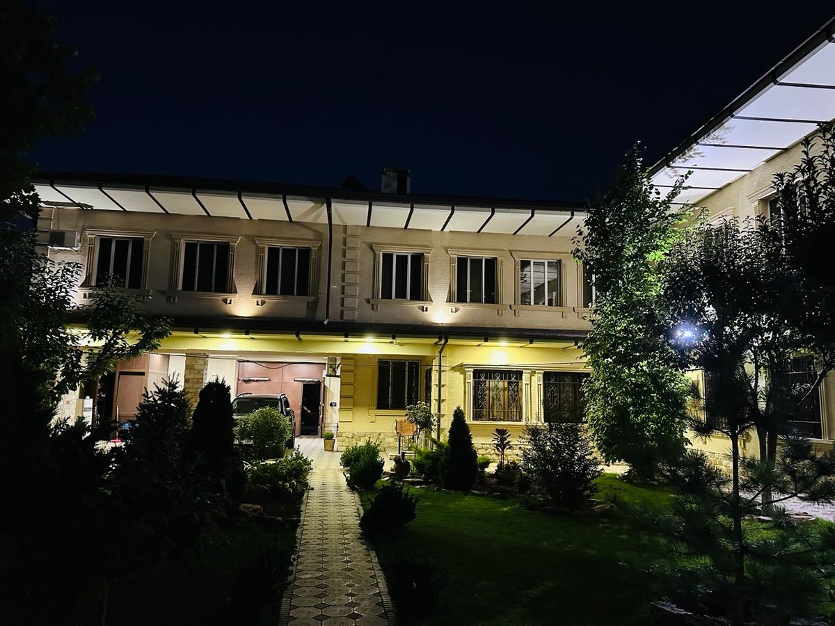 Продается капитальный Дом. Мирзо Улугбекский район, элитная махалля Амира Тимура Площадь участка 9.2 соток Участок ровный, угловой, широкая подъездная улица Общая жилая площадь - 500 м.кв 8 комнат 4 спальни 3 сан. узла Подвал Летняя кухня, барбекю Летняя терраса с раздвижными стеклянными дверями Летний бассейн (4х8) с фильтрами и подсветкой Система отопления: Италия Автоматическая система полива Видеонаблюдение – 10 камер Дизельный генератор HYUNDAI Гараж на 4 авто с автоматическими воротами Двор с ландшафтным дизайном, голубыми елями и фруктовыми деревьями. Цена 880 000 у.е. торг Реальным покупателям. Идеальный вариант под реконструкцию, а также строительство: конструкция строения фундамента позволяют возвести еще +1 этаж, а также возможность возведения на территории еще двух домов. Для подробной