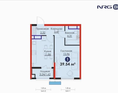 ЖК BI Sad’O Comfort | 1-комнатная | 39.54 м² | коробка | Паркентский