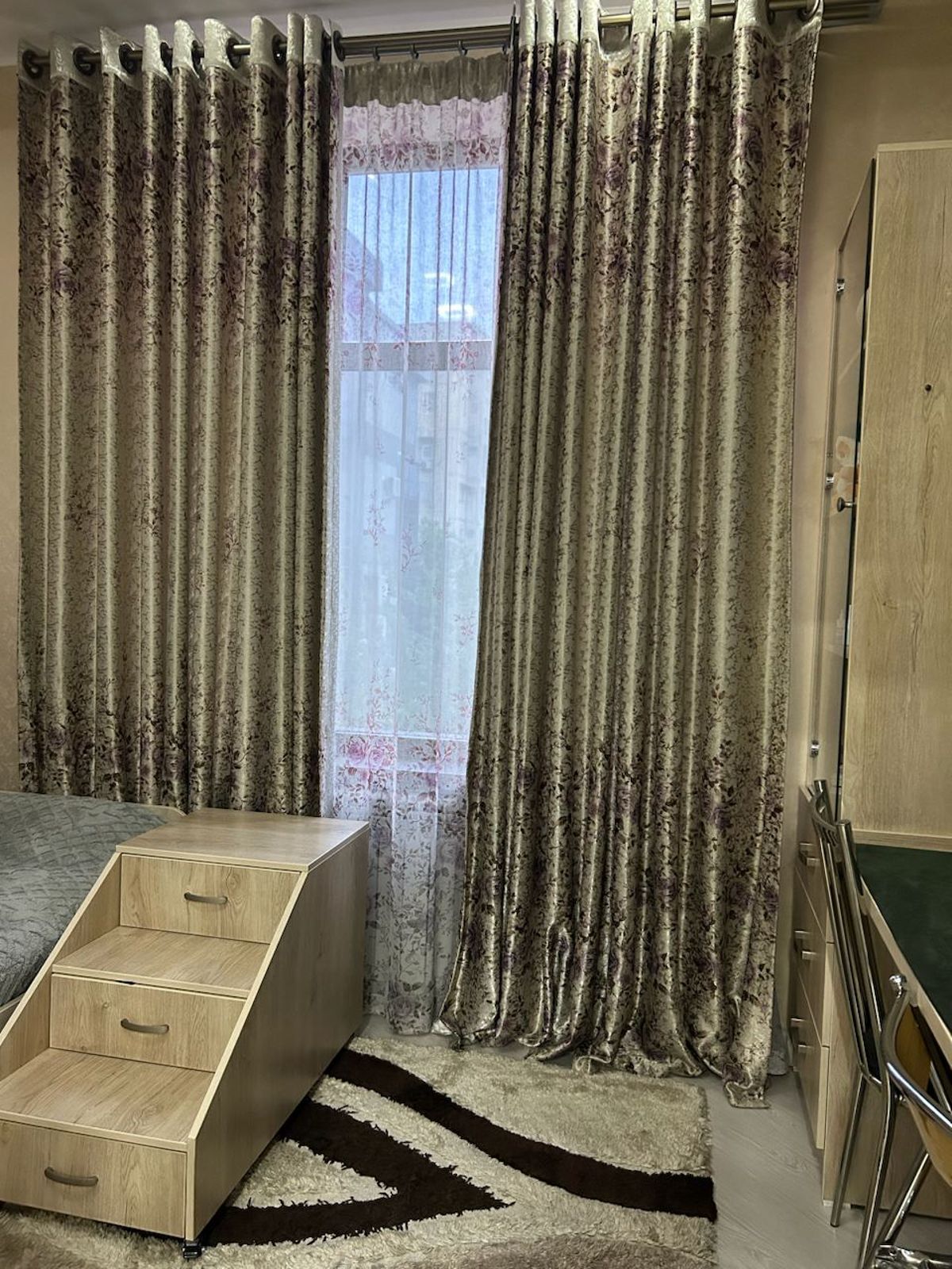 Застройщик NOVA STROY Комплекс "NOVA GARDEN". Ориентир Шохсарой тойхона. Кафе: "Bon", "Les Ailes" на первом этаже комплекса. Наша квартира находится на 4 этаже, 6 этажного, здания. Кирпич. Звукоизоляция. Тёплые полы. Балкон с видом на фонтан. Отличное ЖК. Безшумные лифты. Парковочное место.Кухня+ столовая +ТВ зона объединены в современную студию. 3 спальни с компьютерными столами. 1 комната - полноценная гардеробная. 2 санузла. Один санузел с душевой кабиной. 2 кондиционера.