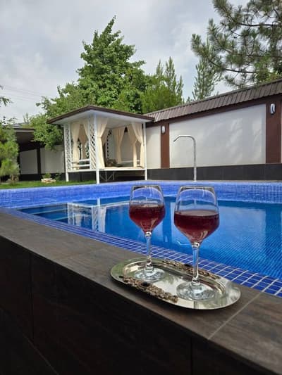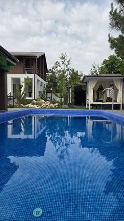 Продаётся свой новый загородный дом-дача в перспективном дачном посёлке 25 км от парка Янги Узбекистан. Бостанлыкский район. Этот дом - ваше выгодное вложение в будущее! Подходит для круглогодичного отдыха или постоянного проживания. 2 бассейна (летний и зимний с подогревом) Площадь участка 6 соток. 2-этажный кирпичный дом с подвалом. В строительстве использовались только качественные отделочные материалы. Первый этаж: студия, санузел с душем, большая веранда. Второй этаж: 3 спальни, санузел с ванной гардеробная, балкон. Отдельный комплекс с зимним бассейном 6×3,5 (фильтр+подогрев) и турецкий хамам. Летний бассейн 9×5 с водопадом (фильтр, майолика), пляжная зона. Летняя кухня, топчан. Зеленая зона с альпийской горкой (крымские сосны, голубая ель, берёза, яблони), автоматический полив. Дорожки - керамогранит. Стоянка с навесом на 2 машины. Автоматические ворота на пульте. Интернет. Вода - своя скважина. Отопление - двухконтурные котлы, тёплый пол. Газ - счётчик Свет - счётчик. Все документы, кадастр готовы к продаже.