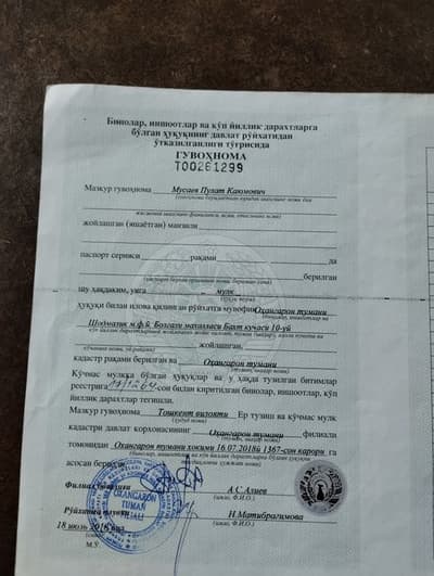 Тошкент вилояти Охангарон тумани Шодмалик Мфй Болгали кишлоги Бахт кучаси 10 уй мурожат учун телефон +998959702826