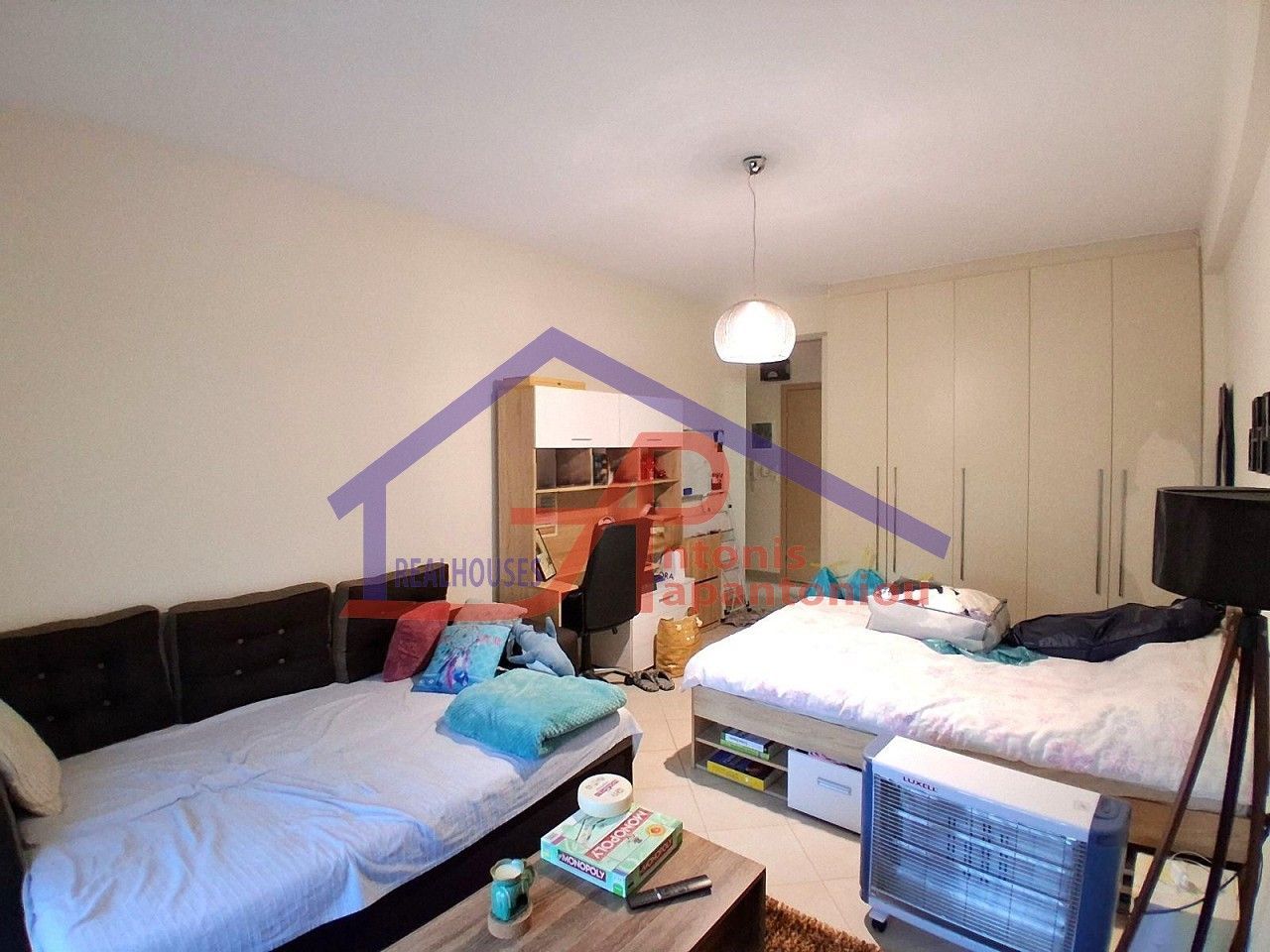- Студийная планировка с кроватями в жилой зоне, тесное расположение мебели