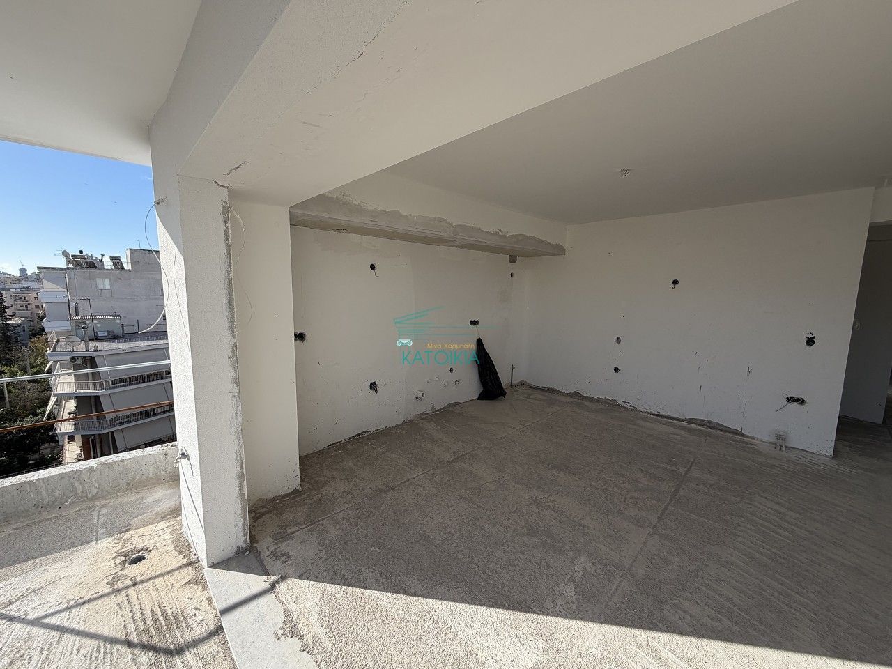 - Голые бетонные стены и пол, нет отделки, коммуникации не завершены