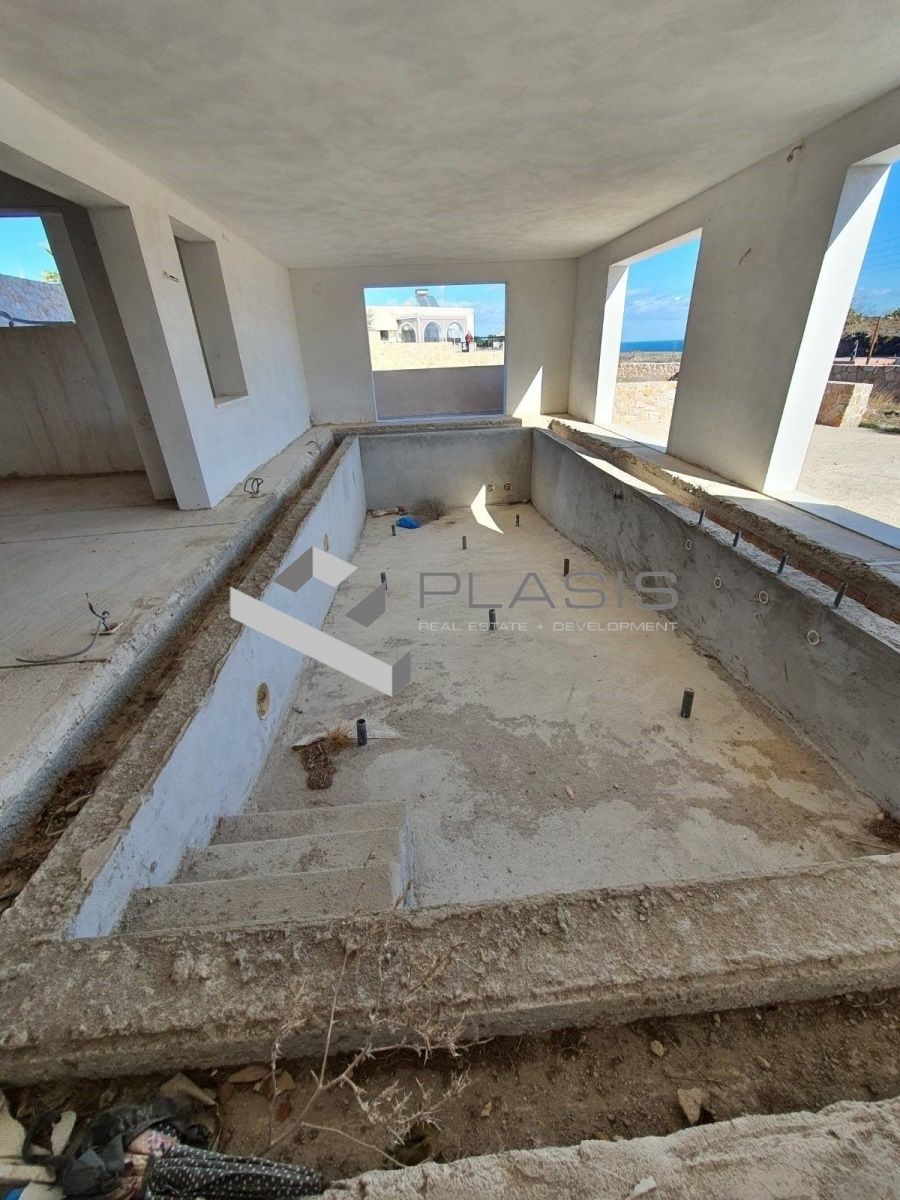 - Объект на стадии строительства: бетонные полы, незавершённый бассейн, строительный мусор
