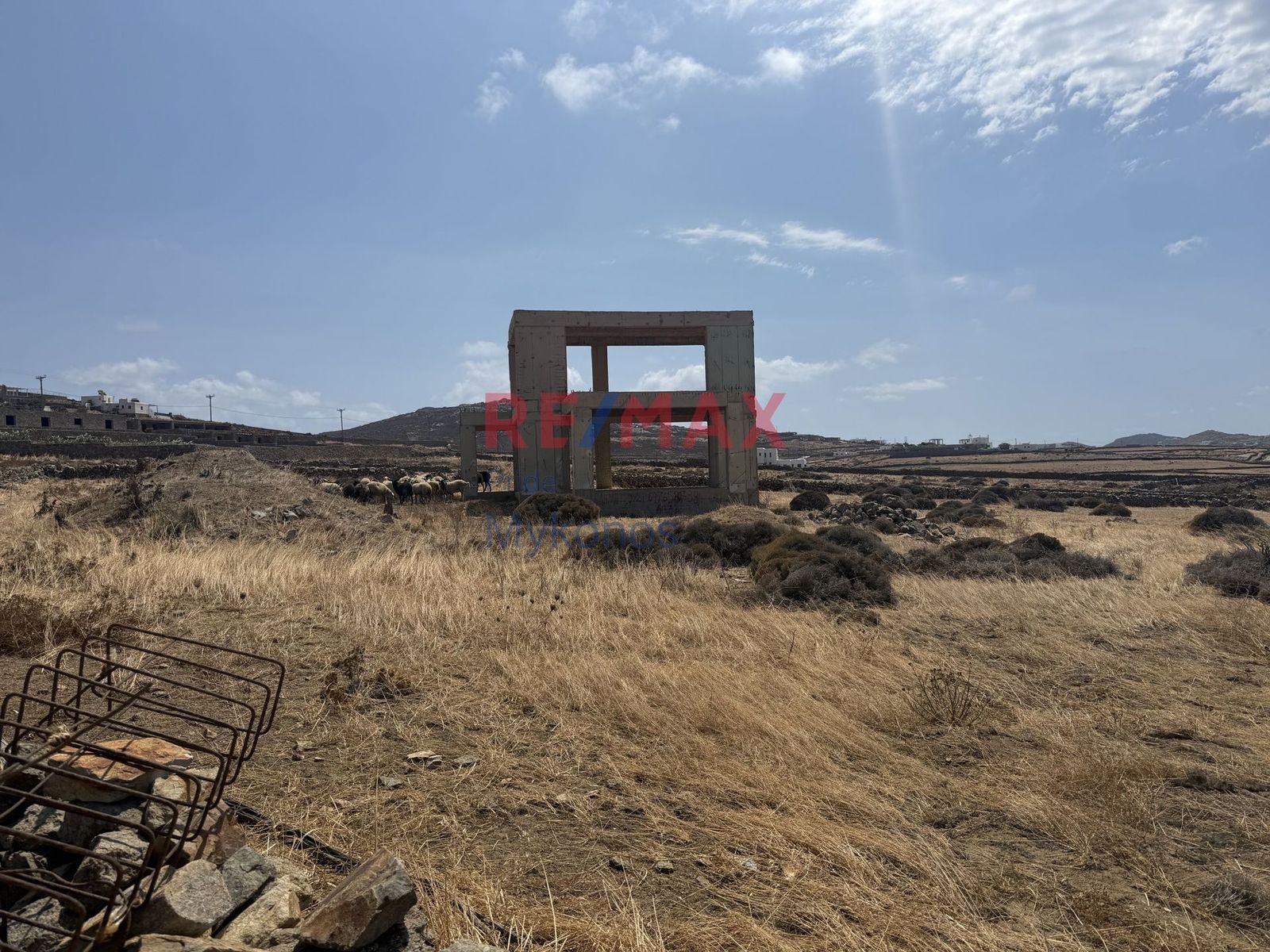 - Заброшенная стройка: сухая трава, строительный мусор, признаки долгого простоя