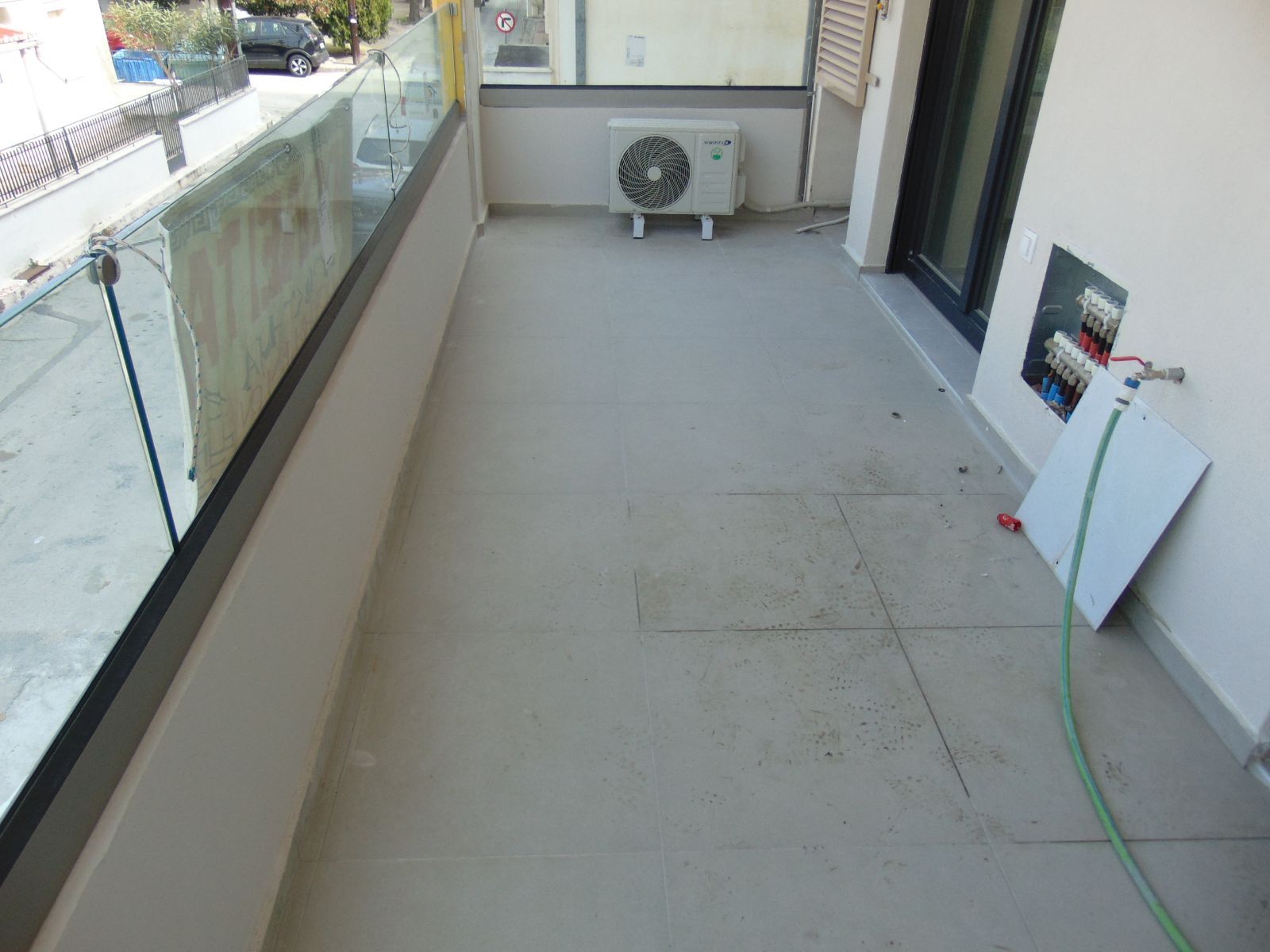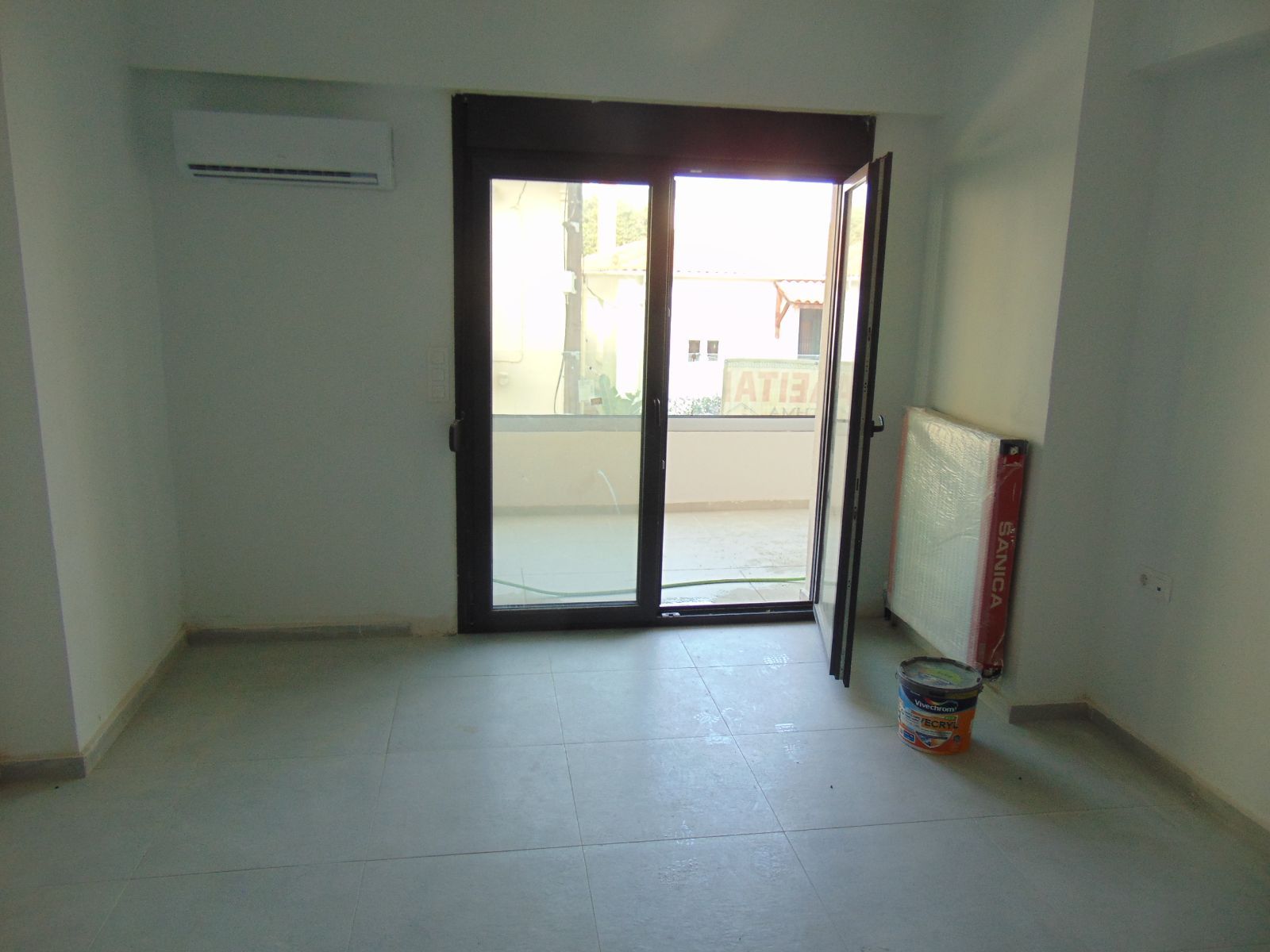 - Квартира без отделки, видны голые балконы, открытая электропроводка, отсутствуют окна/двери