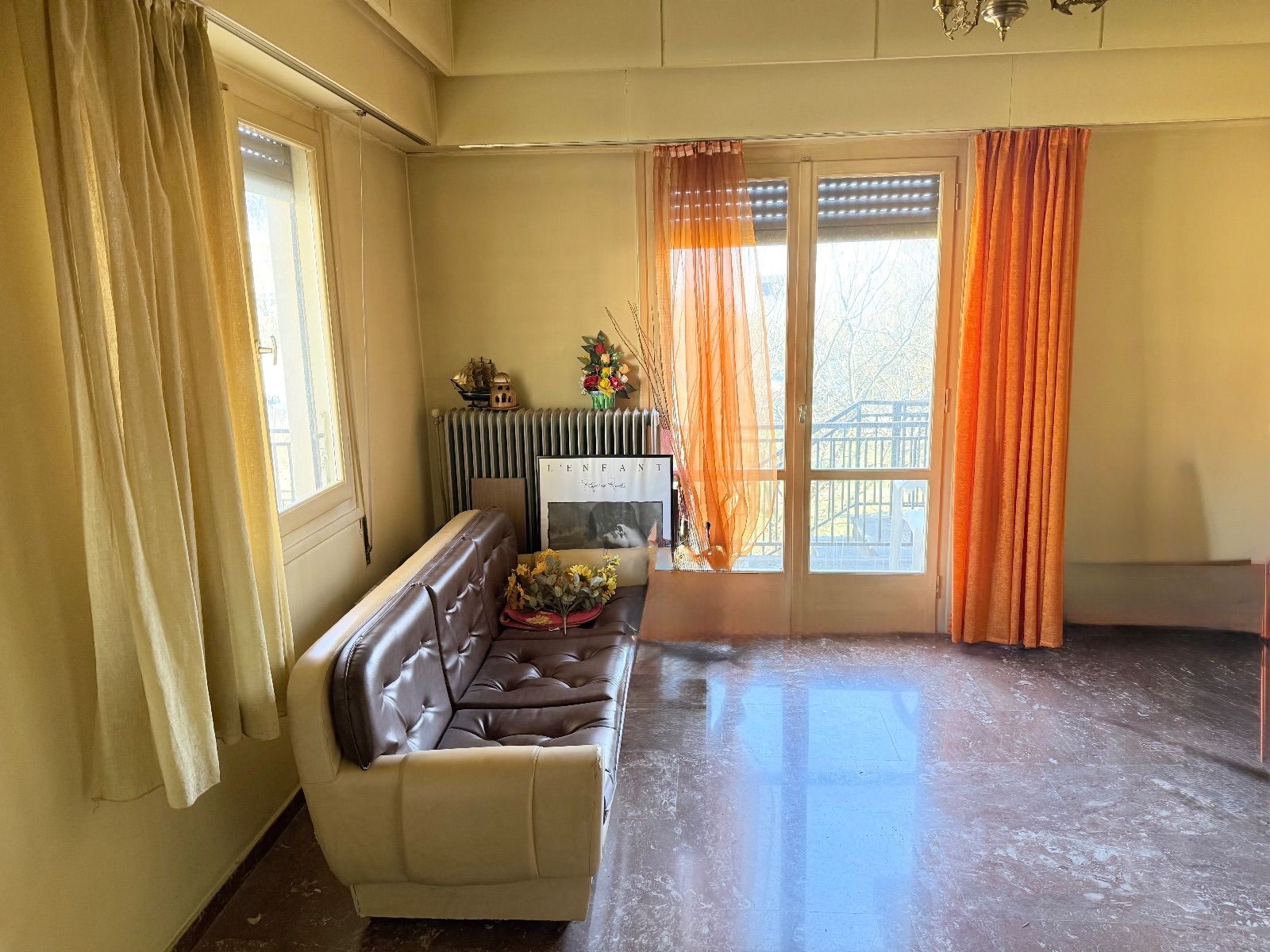 - Устаревшая отделка: старые радиаторы, простая покраска стен, базовые окна