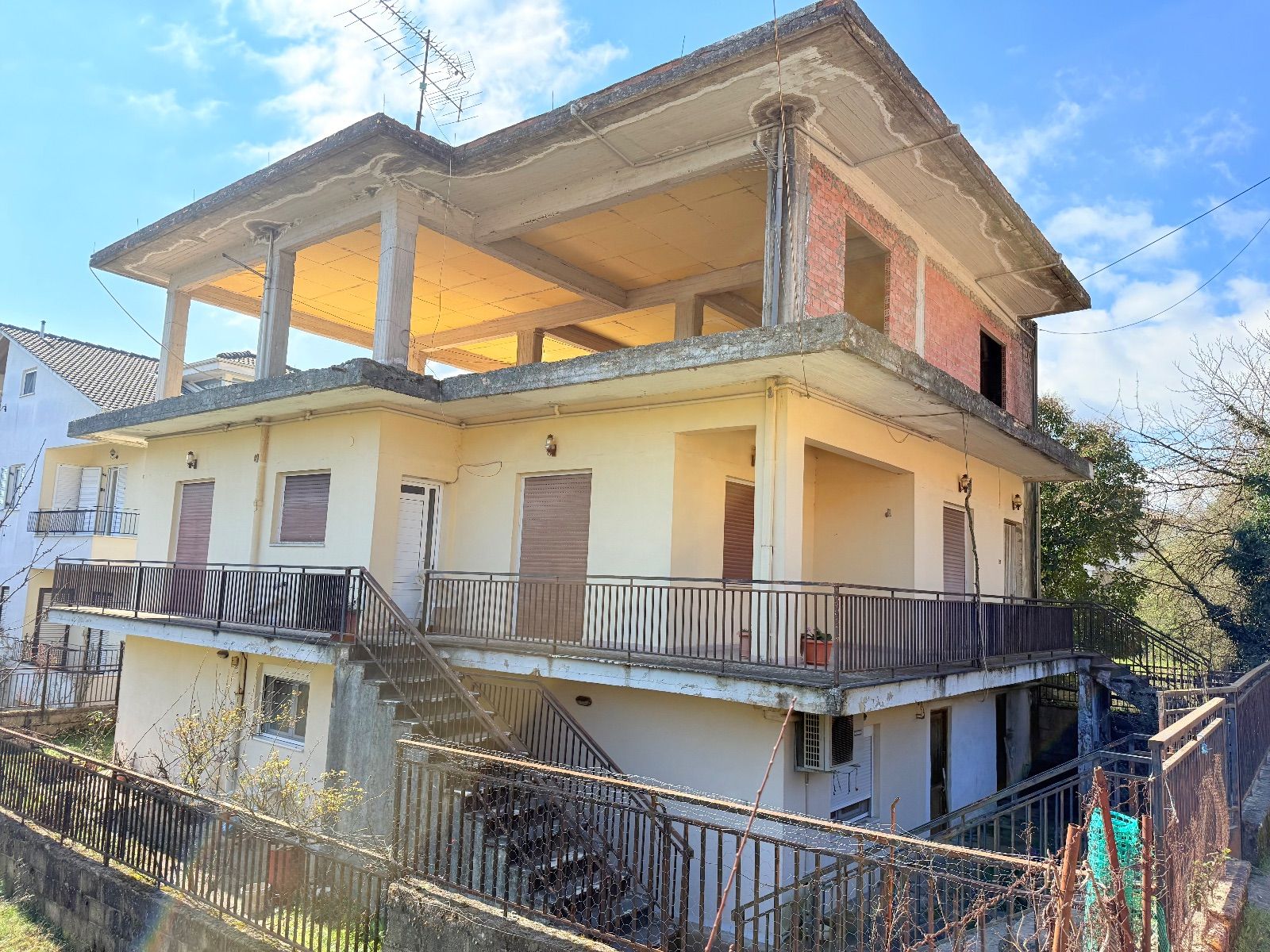 - Верхний этаж не достроен, видны голые бетонные перекрытия и кирпичная кладка