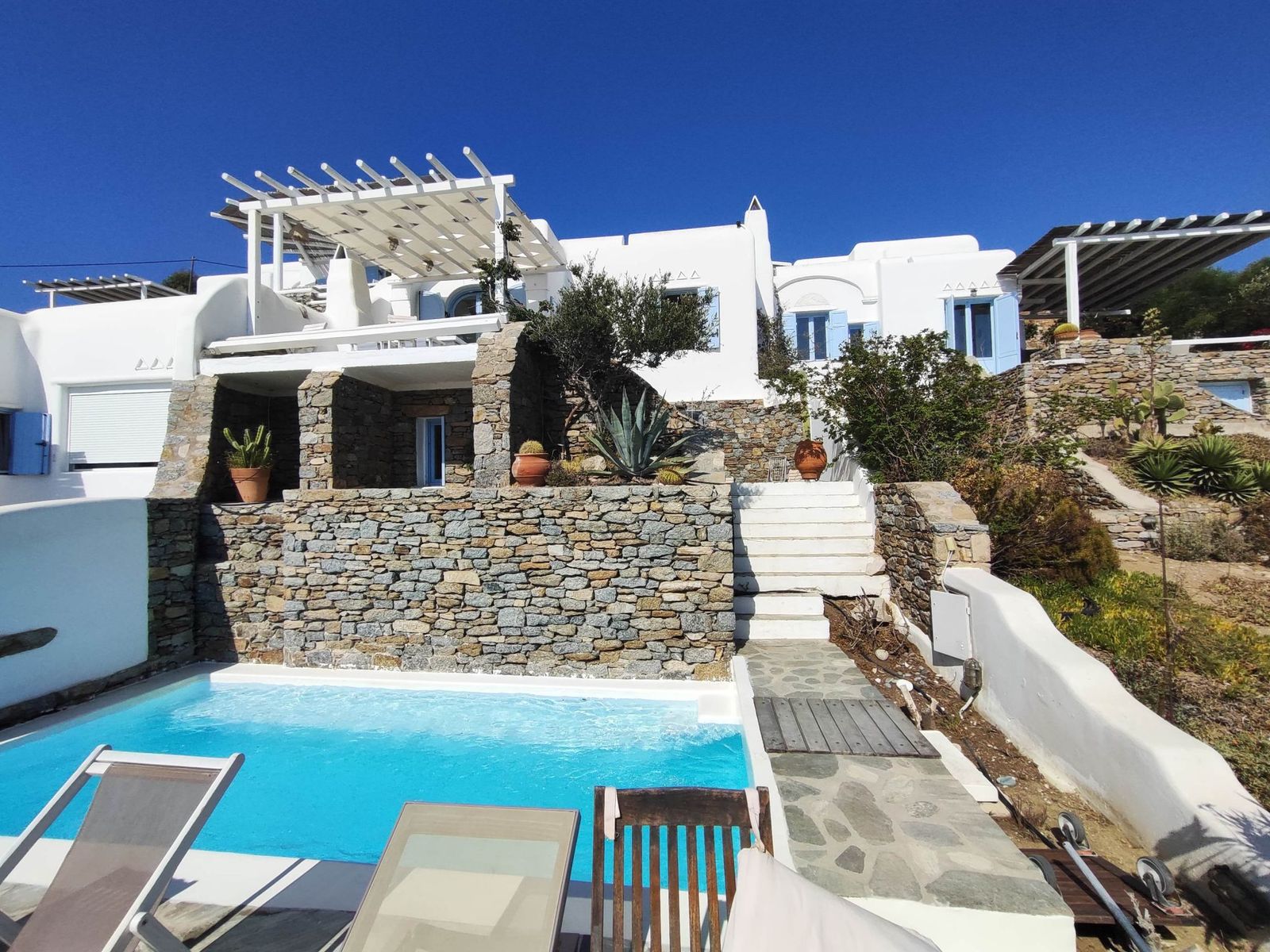 Расположенная в тихом районе Хулакия, эта двухквартирная резиденция сочетает кикладский шарм с современным комфортом, предлагая убежище для тех, кто ищет аутентичный миконосский образ жизни. Являясь частью небольшого жилого комплекса, недвижимость балансирует между приватностью и удобством, что делает её подходящей как для отдыха, так и для инвестиций. Резиденция занимает 103 м² жилой площади и спроектирована для практичной, комфортной жизни. Она включает три светлые спальни, каждая из которых создаёт спокойную и гостеприимную атмосферу, а жилые зоны открытой планировки плавно соединяются с открытым пространством, позволяя естественному свету наполнять дом. Снаружи центральным элементом является частный бассейн, идеальный для наслаждения эгейским солнцем. Дом имеет беспрепятственный вид на море на 180° и юго-западную ориентацию, позволяющую любоваться культовыми закатами острова. Расположение также минимизирует воздействие северных ветров, обеспечивая комфортную жизнь на открытом воздухе в течение всего сезона. На участке 130 м² открытые зоны продуманно спроектированы для отдыха, обедов и развлечений на фоне потрясающего морского пейзажа. Хулакия предлагает тихую, естественную обстановку, оставаясь в нескольких минутах езды от города Миконос и знаменитых пляжей острова. Местоположение обеспечивает баланс между безмятежным уединением и лёгким доступом к ресторанам, ночной жизни и магазинам. Благодаря выгодной ориентации, панорамным видам на закат и практичному дизайну, эта резиденция представляет редкую возможность испытать суть миконосской жизни. Расположенная на северо-западном побережье Миконоса, Хулакия — одно из самых очаровательных и спокойных мест острова. Известная своей природной красотой и приватностью, эта эксклюзивная зона предлагает резидентам мирное убежище вдали от более людных мест, оставаясь всего в нескольких минутах езды от оживлённого центра города Миконос. Хулакия знаменита своим уникальным галечным пляжем — охраняемым природным объектом, отличающим её от песчаных берегов других частей острова. Береговая линия здесь дикая и нетронутая, с кристально чистыми водами и захватывающими панорамами Эгейского моря. Юго-западная ориентация идеально подходит для наблюдения за эффектными закатами, окрашивающими горизонт в золотые и пурпурные оттенки каждый вечер. Ещё одно преимущество Хулакии — защищённое расположение, обеспечивающее низкую подверженность сильным северным ветрам, влияющим на другие части Миконоса. Это делает жизнь и отдых на открытом воздухе более комфортными в течение всего сезона. Несмотря на безмятежную атмосферу, Хулакия удобно расположена. За несколько минут езды можно добраться до пляжа Агиос Стефанос — одного из самых семейных песчаных берегов острова, а также до космополитических удовольствий города Миконос с его изысканными ресторанами, роскошными бутиками и яркой ночной жизнью. Район также обеспечивает лёгкий доступ к новому порту, что делает морские путешествия особенно удобными. Редкое сочетание природного спокойствия, панорамных видов на море и близости к ключевым локациям делает Хулакию одним из самых желанных жилых районов Миконоса. Это идеальный выбор для тех, кто ищет дом, предлагающий как уединение, так и возможность погрузиться в всемирно и