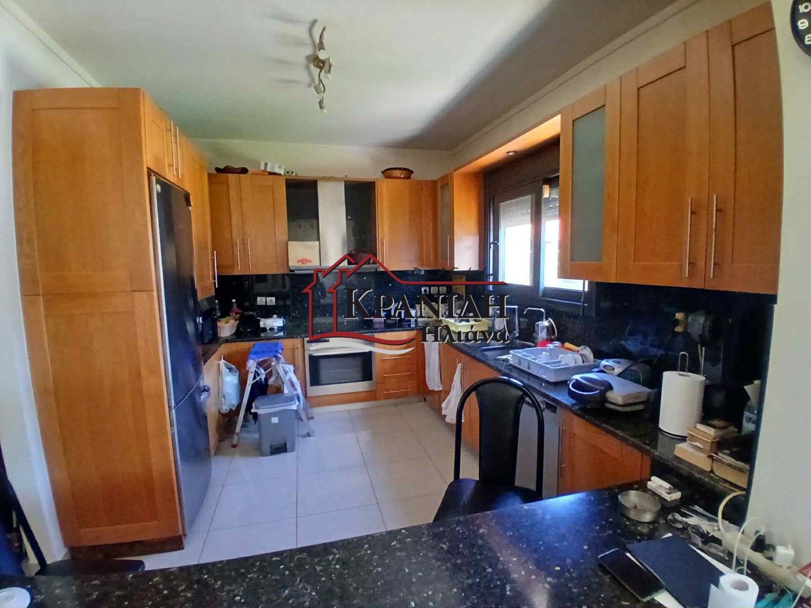 - На кухне видны личные вещи и беспорядок на столешницах
