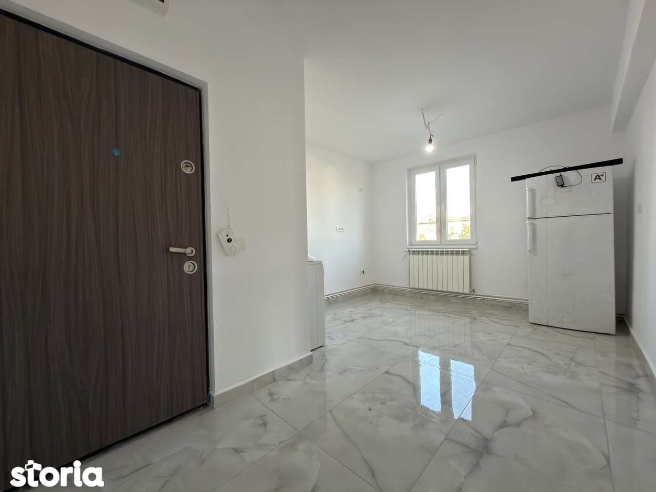 - Видны следы незавершенной отделки: провода на потолке, отсутствие кухни