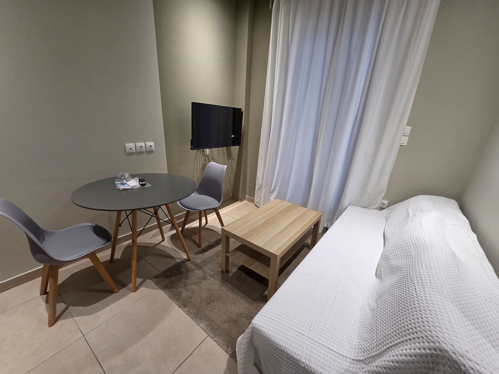 - Студия очень маленькая, диван-кровать в основной зоне