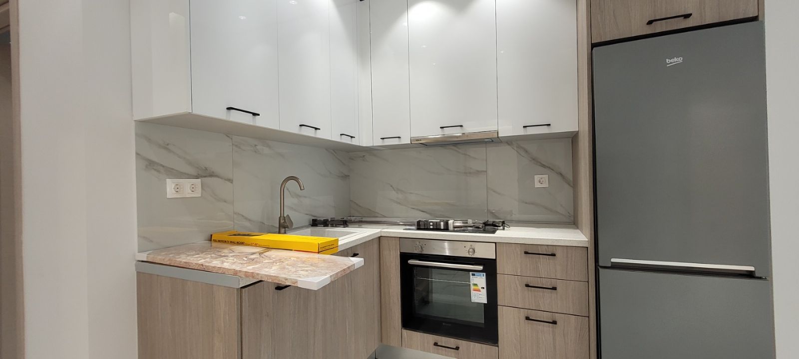 - Желтая книга на столешнице выглядит как случайный объект, портит презентацию
