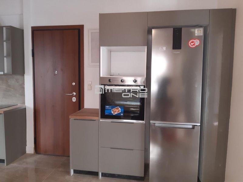 - Кухня с заводскими наклейками на технике, возможно новострой без жильцов