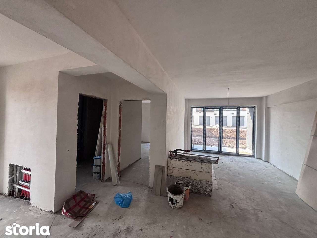 - Объект на стадии строительства: бетонные полы, незавершенная штукатурка, открытая проводка, строительный мусор