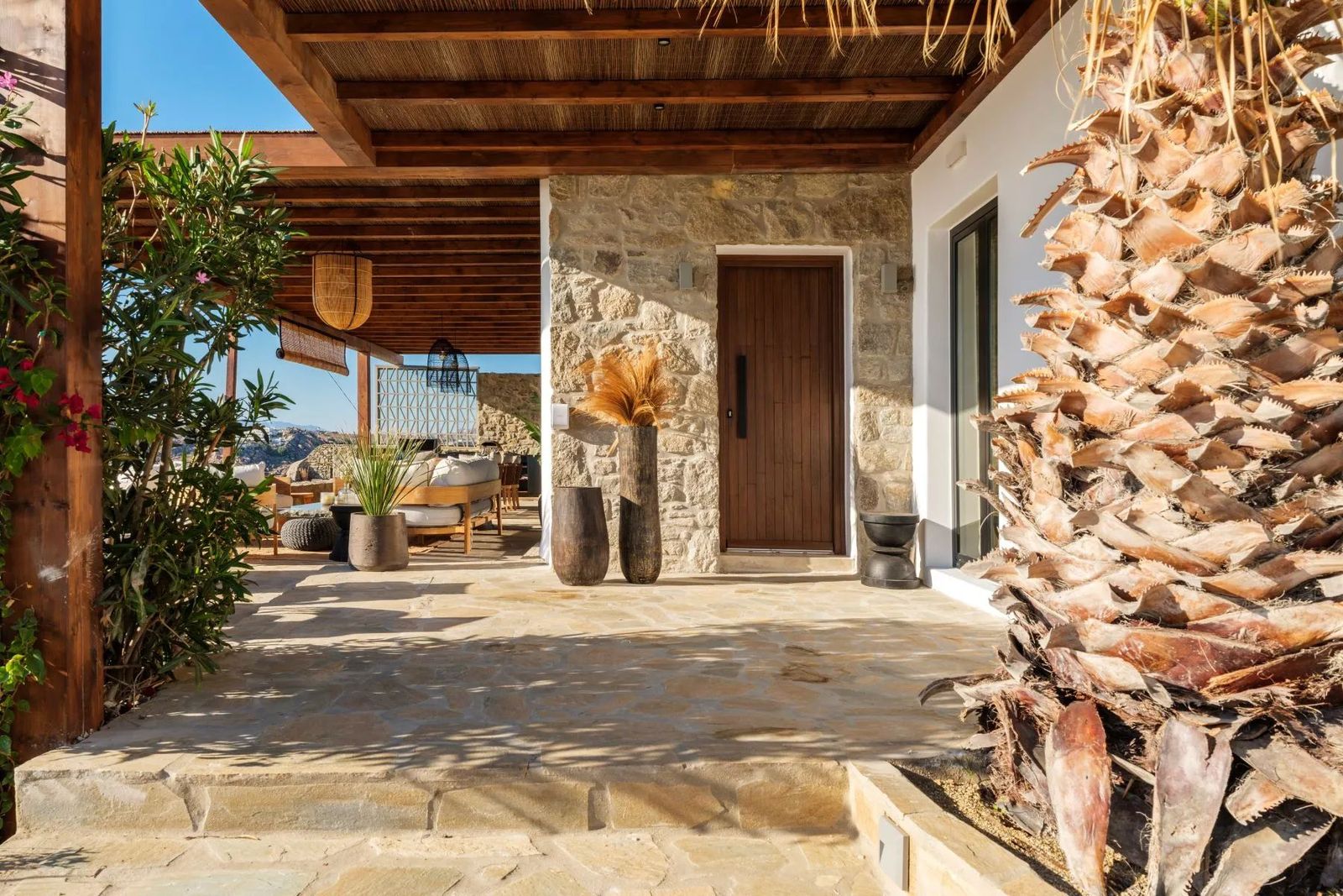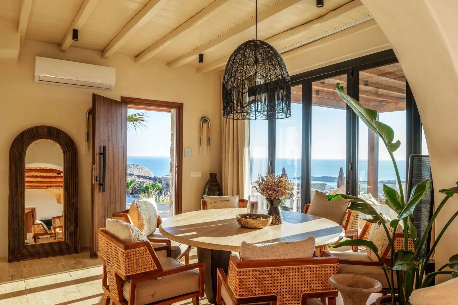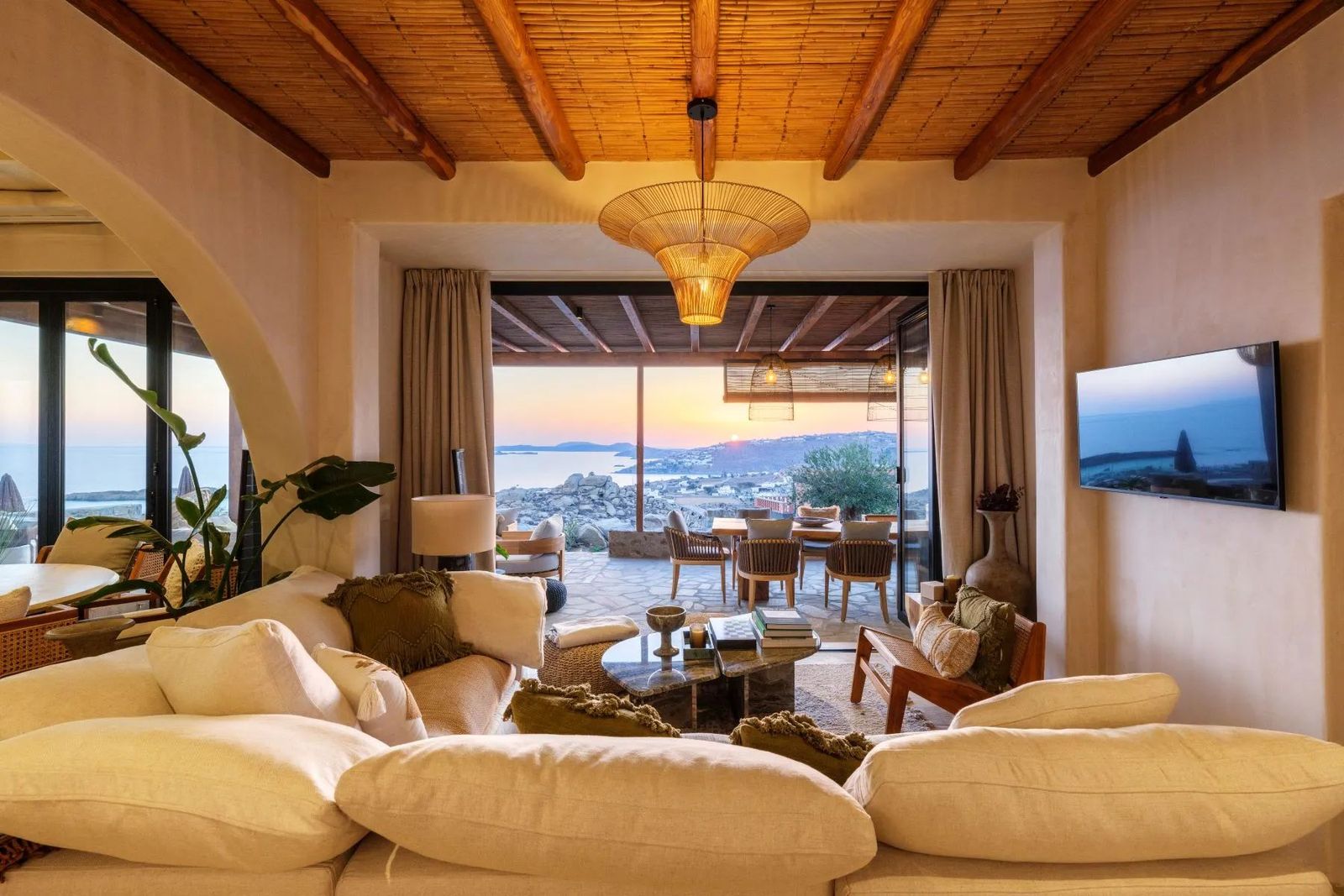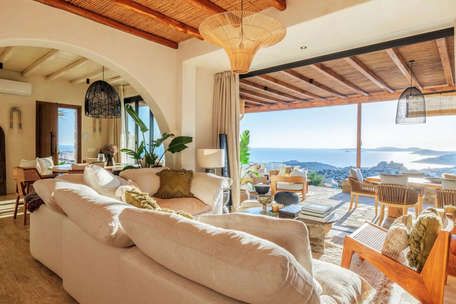 Расположенная на обширном участке площадью 2000 м², эта исключительная вилла предлагает непрерывные панорамные виды на залив Парагка и знаменитый пляжный бар Scorpios, воплощая квинтэссенцию образа жизни на Миконосе. Объект мастерски сочетает интерьеры в стиле Тулум с элементами средиземноморской архитектуры, создавая безмятежное и изысканное убежище. Вилла занимает два уровня и спроектирована для максимального комфорта и элегантности. На входном уровне гостиная и столовая открытой планировки залиты естественным светом и плавно соединяются с полностью оборудованной современной кухней — идеальной как для непринуждённой семейной жизни, так и для приёма гостей. Три прекрасно обставленные спальни, каждая с собственной ванной комнатой, обеспечивают приватность и роскошь как для жильцов, так и для гостей. Гостевой санузел дополняет уровень, гарантируя удобство. Снаружи террасы и патио виллы создают идиллическую обстановку для жизни на свежем воздухе. Стильная зона отдыха и обеденная зона на открытом воздухе — идеальный фон для вечерних встреч на закате, а полностью оборудованная зона барбекю располагает к непринуждённым развлечениям. Резиденция также имеет частную сауну и великолепный бассейн, где можно наслаждаться видами на Эгейское море и живую энергию побережья Миконоса. На верхнем уровне расположена главная спальня с собственной ванной комнатой, предлагающая уединённое убежище с захватывающими видами на море. Каждая деталь виллы продумана так, чтобы сбалансировать современную роскошь с расслабленным богемным очарованием в духе Тулума, сохраняя при этом крепкую связь с окружающей средиземноморской средой. Этот объект представляет редкую возможность приобрести изысканную виллу под ключ в одном из самых желанных мест Миконоса, где приватность, стиль и непревзойдённые виды сходятся, создавая поистине уникальный опыт проживания. Миконос — остров в Южных Эгейских островах, часть Кикладских островов. Остров является одним из наиболее развитых туристических направлений в мире и известен своей насыщенной и живой ночной жизнью. Уникальные особенности: Миконос — космополитичный и гламурный остров, привлекающий большое количество греческих и иностранных знаменитостей, выбирающих остров для летнего отдыха. Одновременно характерными чертами Миконоса являются его живописная красота, которой можно наслаждаться, прогуливаясь по его улочкам, замечательные пляжи, роскошные отели и рестораны. Особенность острова в том, что он удовлетворяет всем требованиям: предлагает любителям ночной жизни множество баров, но в то же время каждый посетитель может открыть богатую историю острова, достопримечательности и археологические памятники. Доступность: Миконос доступен из порта Рафина и Пирей, паромы отправляются несколько раз в день, в летний сезон как минимум три парома утром и один-два зимой. Также на Миконос можно добраться самолётом, так как на острове есть аэропорт с множеством рейсов, работающих в основном в летний период при высоком спросе. Инвестиционная возможность: Покупка недвижимости на Миконосе — крупная инвестиция с постоянным и растущим инвестиционным интересом, поскольку остров привлекает туристов и инвесторов со всего мира.