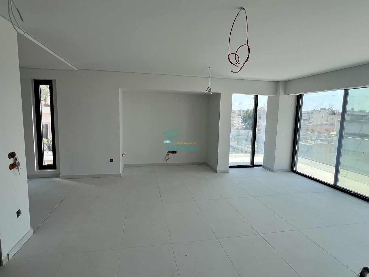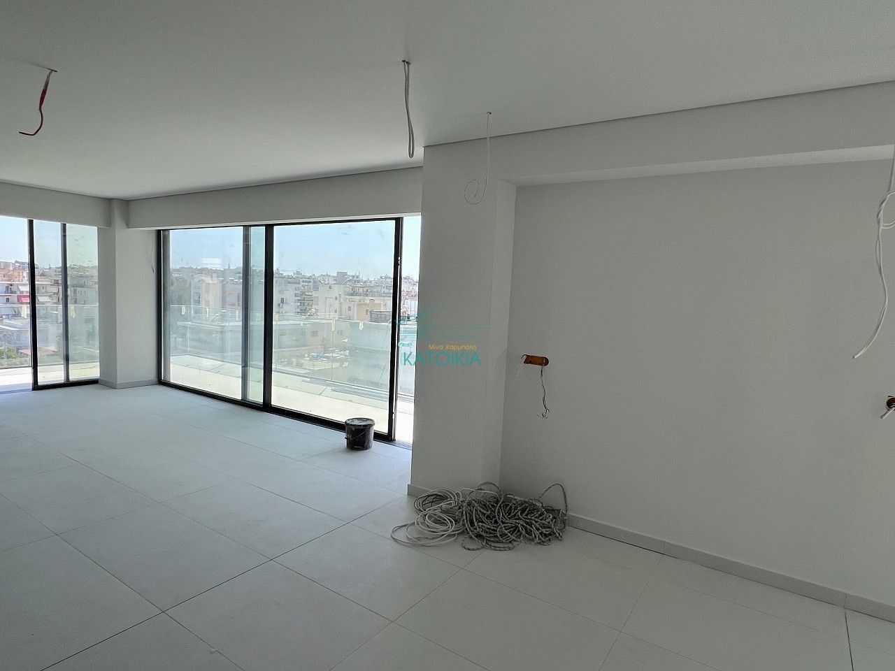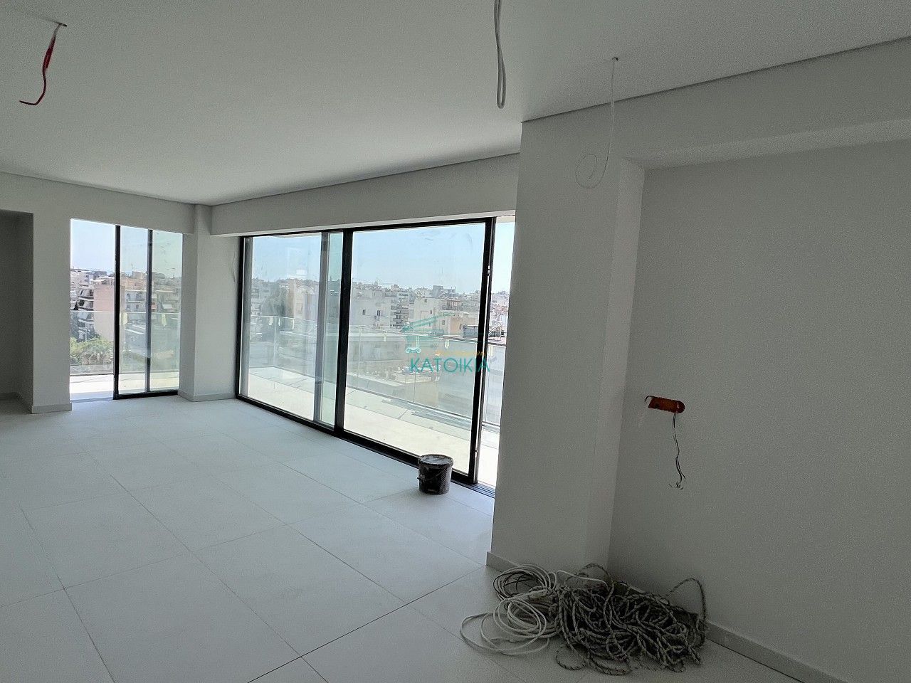 - Видны строительные материалы и провода — объект на финальной стадии отделки