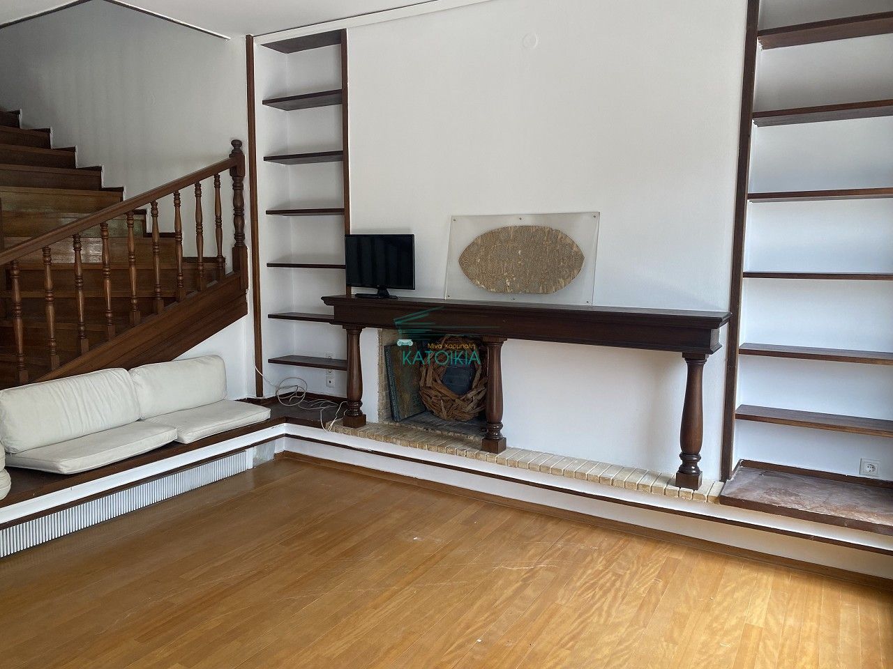 - Камин и встроенные элементы выглядят неухоженными, требуют обновления