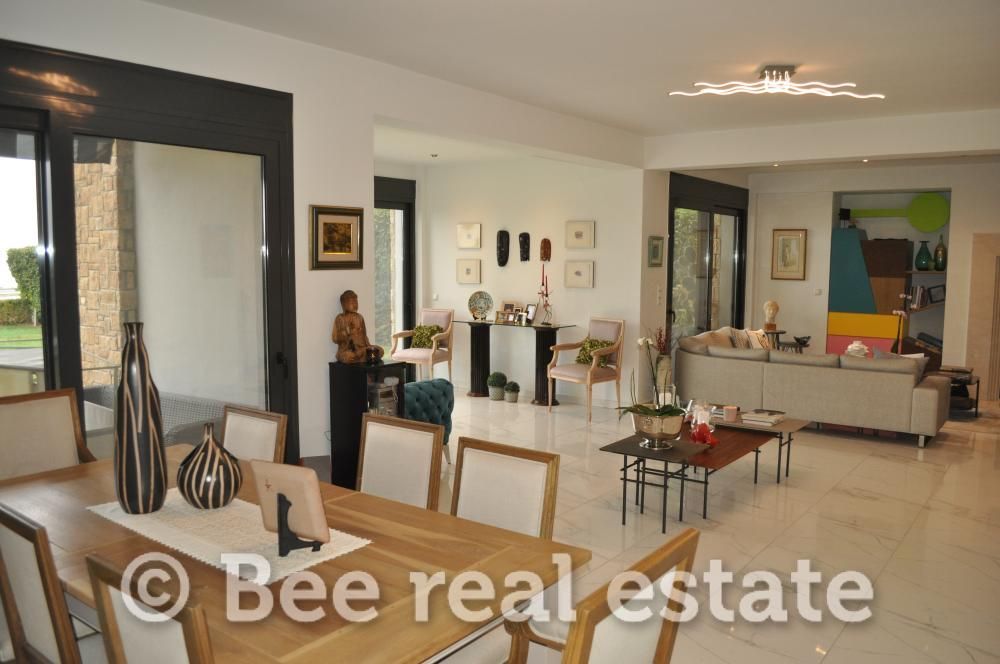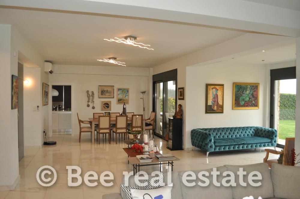 В продаже отличный четырёхуровневый отдельный дом площадью 387 м² с тепловым насосом, внутренним лифтом, частным садом и закрытой парковкой на 2 места. Планировка: Подвал: просторное открытое пространство, 1 спальня, 1 ванная, 1 кухня, 2 кладовые, отдельная служебная дверь. Первый этаж (цокольный): гостиная с камином и выходом в сад, отдельная кухня, столовая, гостевой санузел. Второй этаж: главная спальня с встроенным гардеробом, собственная ванная и гардеробная комната, 2 детские спальни, 1 ванная. Все спальни имеют доступ на большой балкон. Третий этаж: 1 спальня или офис, ванная с выходом на просторную террасу. Всего в доме: 5 спален, 1 гостиная, 1 просторное открытое пространство, 2 кухни, 4 ванные, 1 санузел, 2 кладовые. Дом отличного эстетического качества с благоустроенным садом и прекрасным видом на горы. Расположен в спокойном и живописном месте. Контакты: ООО Bee Panoramic, Panorama, Leoforos Komninon 6, тел. 2310 34 00 34, +30 693 66 66 510 (Stella Daveti).
