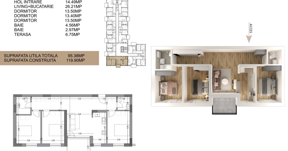 Предлагаем к продаже квартиру из 4 комнат площадью 95.38 м² в новом комплексе, расположенном на улице Drumul Cooperativei.