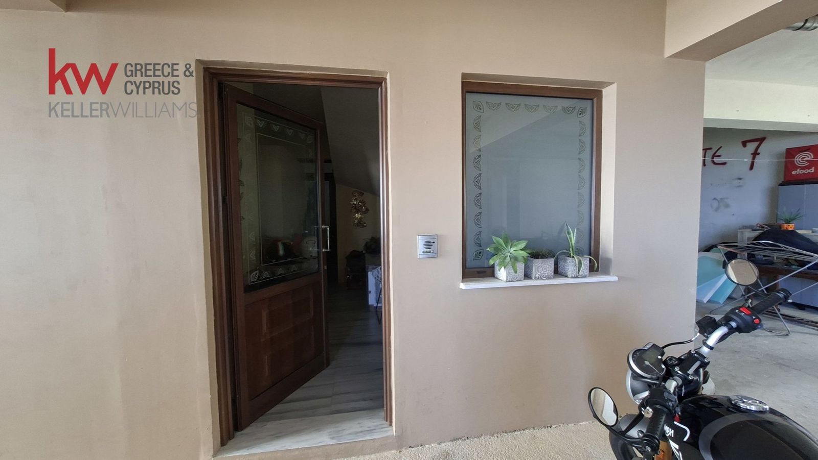 - Первое помещение захламлено: мотоцикл, инструменты, мусор — выглядит как склад/гараж