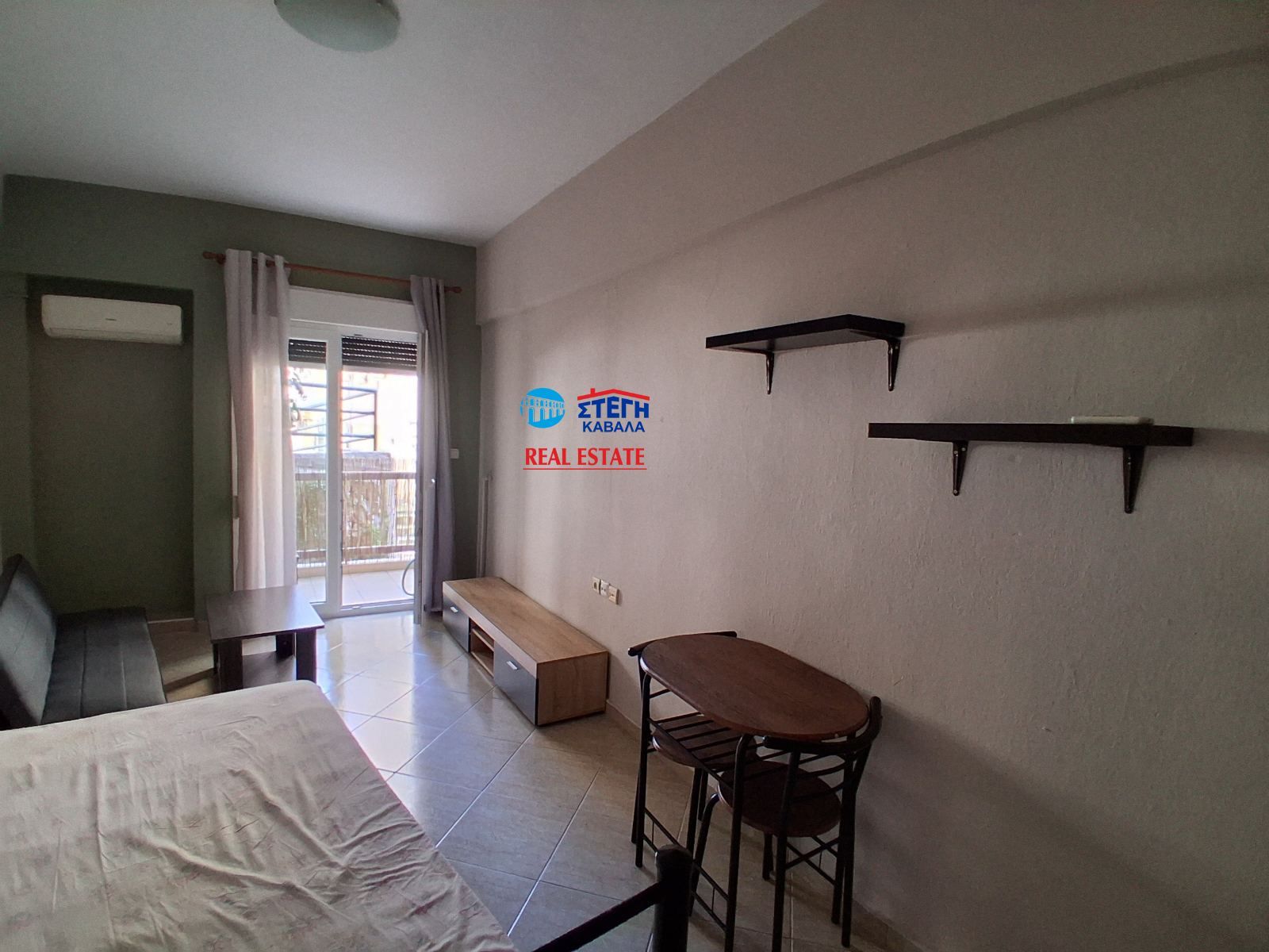 - Студия с кроватью в жилой зоне — компактная планировка