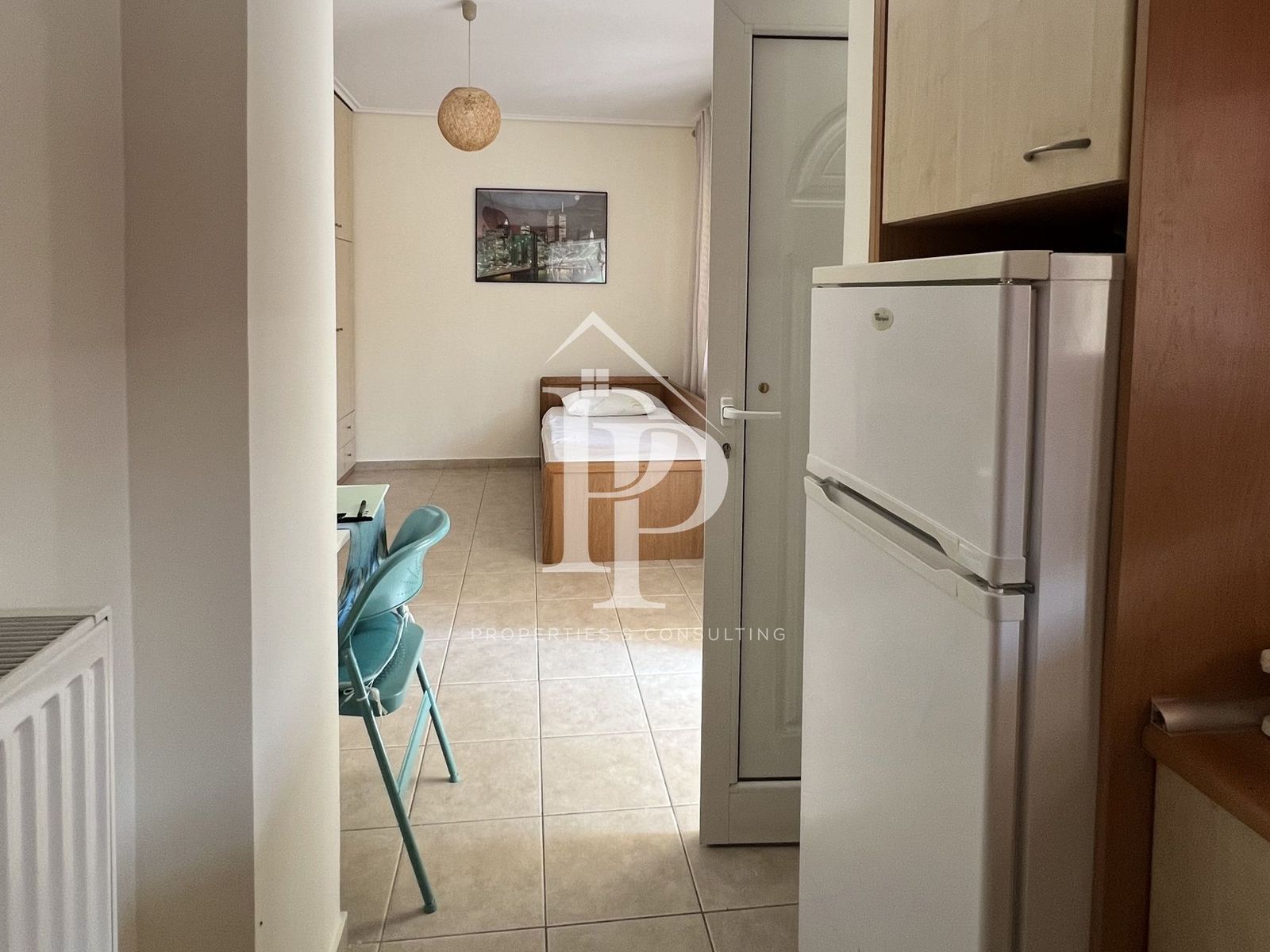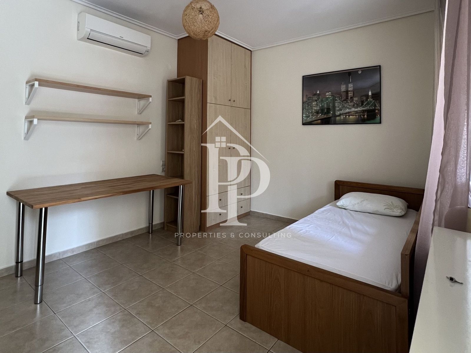 - Минималистичная обстановка, комната выглядит полупустой