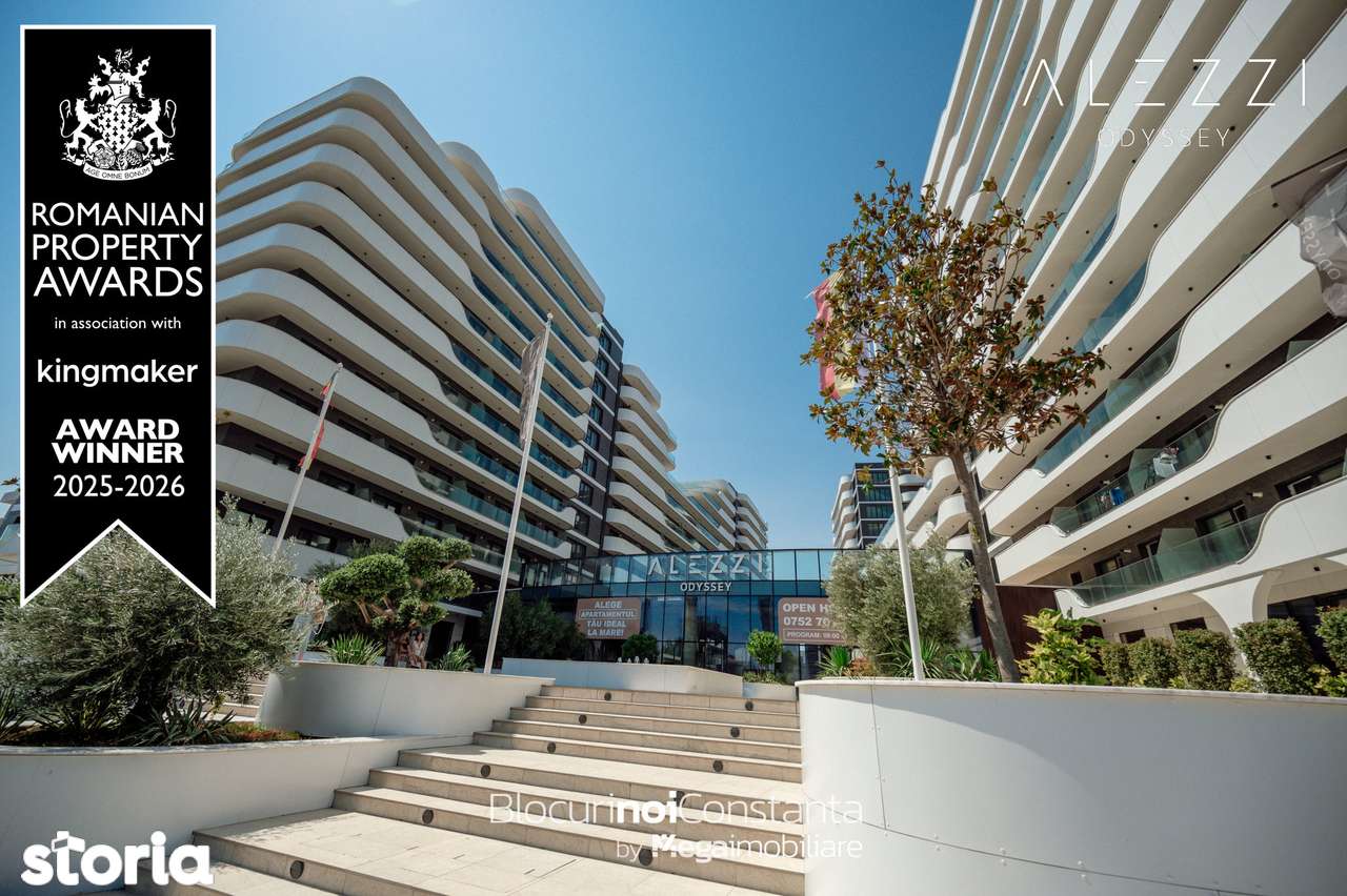 ALEZZI Odyssey — премиум-резидентский проект, расположенный в Mamaia Nord. Идеальный выбор как для отдыха без компромиссов, так и для инвестиции в зону с высоким потенциалом развития. Апартаменты сдаются полностью отделанными, что позволяет собственнику сразу насладиться новым жильём. Проект продолжает установленные стандарты бренда ALEZZI, предлагая современную концепцию, ориентированную на качество, функциональность и образ жизни курортного типа. Общие удобства: - открытый бассейн - крытый бассейн - SPA & wellness - детская площадка - премиум-лобби с зоной ожидания - зоны отдыха и зелёные пространства - коммерческие помещения и услуги Апартамент с видом на море: гостиная с открытой кухней, спальня, ванная и терраса; общей площадью 49.5m² — 89.900€, НДС включен — промоцена при полной оплате. Цена не включает нотариальные сборы. Отделка и оборудование: - вентилируемый фасад с базальтовой минеральной ватой - окна PVC VEKA с 5-камерным профилем для звуко- и теплоизоляции - металлическая противовзломная входная дверь - внутренние двери из МДФ - конденсационный газовый котёл с алюминиевыми радиаторами - кондиционер типа инвертер 12.000BTU - полностью оборудованная ванная комната - керамическая плитка высокого качества - 3 скоростных лифта Schindler в каждом подъезде