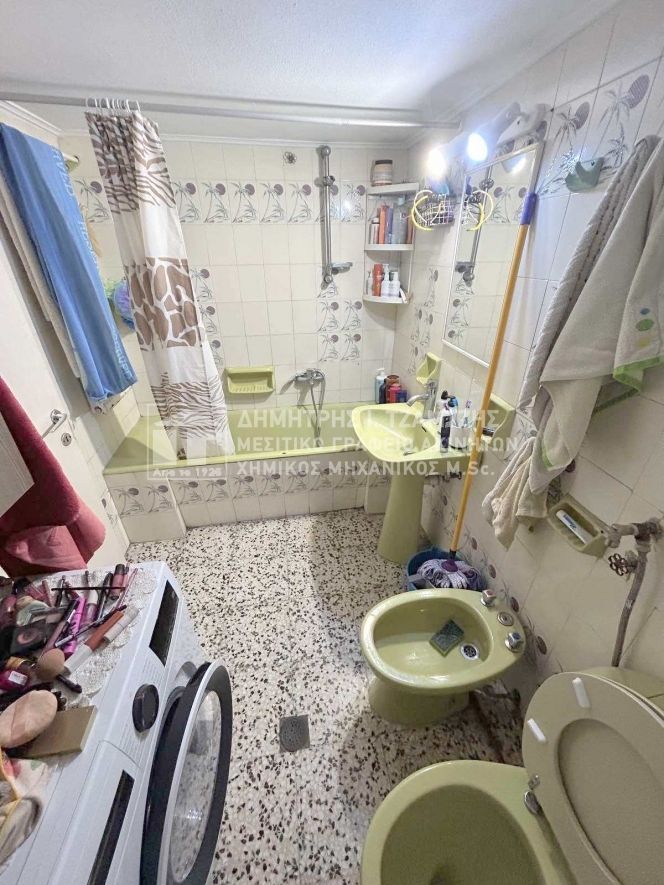 - Устаревшая отделка: старая люстра, типовая мебель, терраццо-пол в ванной