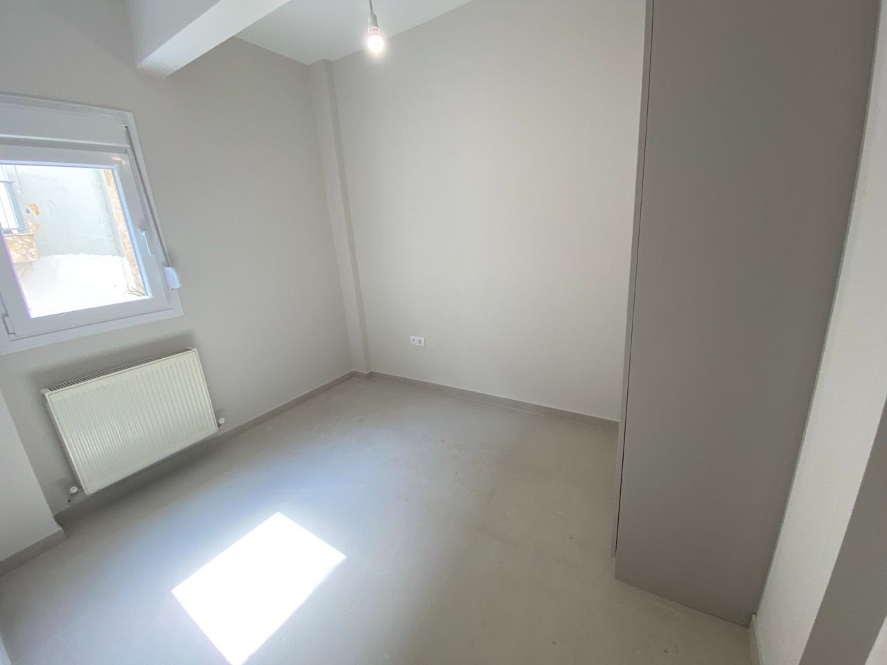 - Видны следы строительной пыли и мелкий мусор на полу