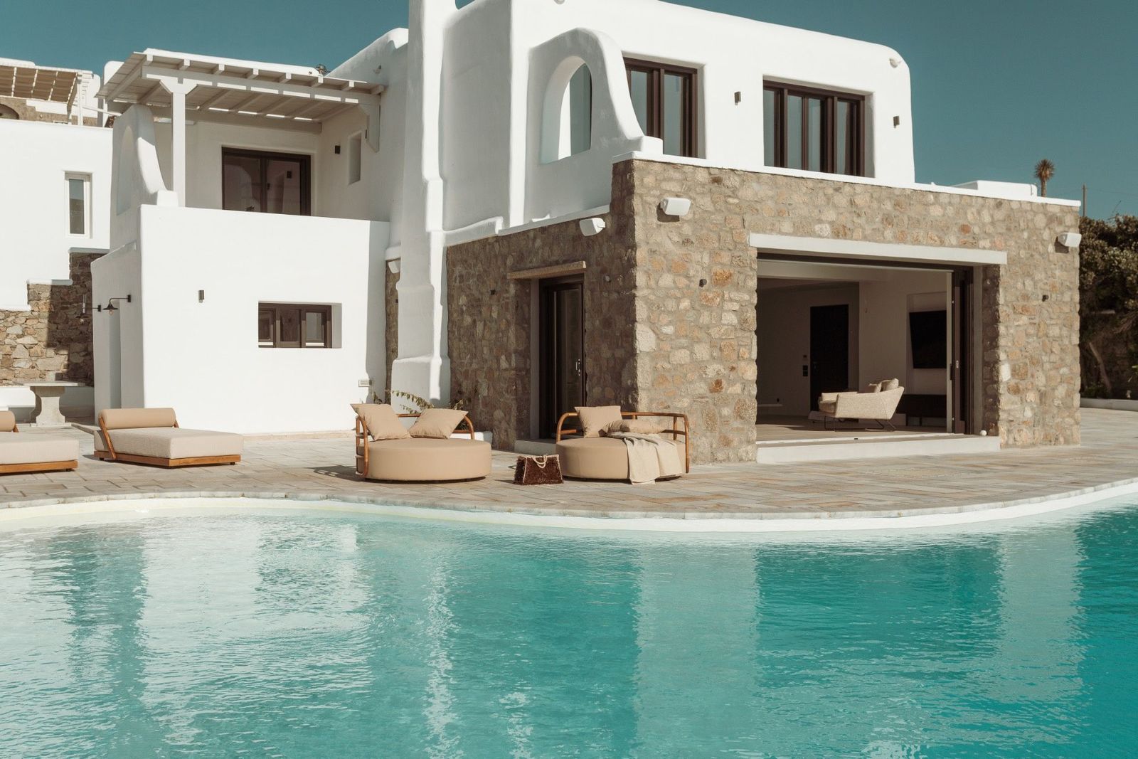 Вилла Sunset – вилла, выходящая за рамки описания; полный сенсорный опыт В сердце Алеомандры, с Делосом на горизонте и самым захватывающим закатом Эгейского моря в центре внимания, вилла Sunset воплощает циклadic элегантность в её лучшем проявлении. Это не просто роскошная резиденция – это живой холст спокойствия и изысканной эстетики, приглашающий вас испытать её, а не описать. Её архитектура гармонично сочетает традиционную циклаическую идентичность с чистыми, современными линиями. Экстерьер раскрывается как естественное продолжение горизонта: потрясающий бесконечный бассейн в стиле озера, каменные террасы, открытые зоны отдыха и вид, захватывающий дух. Каждая деталь предназначена для пробуждения чувств: солнечный свет, струящийся в комнаты, морской бриз, касающийся каменных стен, и безграничная синь, объединяющая небо и воду. Здесь роскошь никогда не бросается в глаза – она текёт беспрепятственно, как свет на белом. Описание резиденции Вилла Sunset раскинулась на двух уровнях и располагает девятью элегантными спальнями с ванными – каждая частный рай комфорта и утончённого стиля. Основной дом включает пять спален на двух уровнях. Гостиные и столовые предлагают большие окна, обрамляющие бассейн и Эгейское море, а полностью оборудованная кухня приглашает моменты общения и удовольствия. На уровне ниже бассейна находятся три независимых гостевых люкса с отдельным входом, предлагающих уединение и величественные морские виды. Дополнительный гестхаус при входе на виллу завершает картину, идеален для приёма с грацией и комфортом. В открытых пространствах вилла раскрывает свою истинную магию: просторные зоны отдыха и обеда, зону барбекю, идеальную для вечеров под открытым небом, и поражающий воображение бесконечный бассейн, отражающий закат золотистыми бликами. От рассвета до заката каждый момент здесь – празднество миконского света, моря и безмятежности.