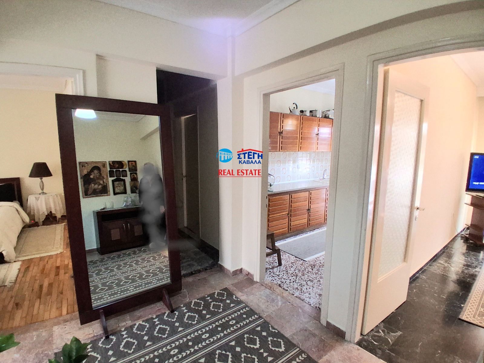 - Мраморный пол в коридоре имеет потертости и пятна