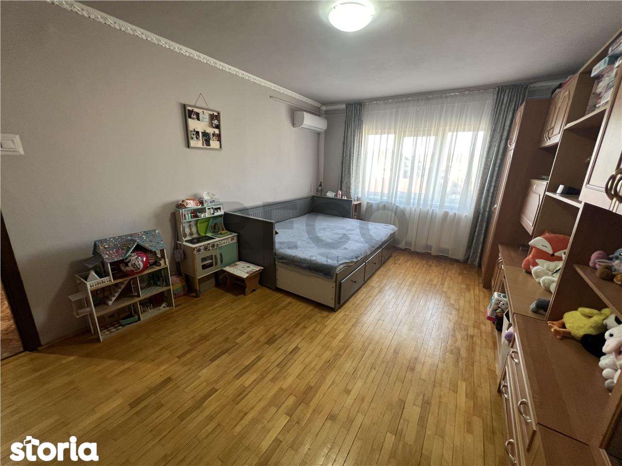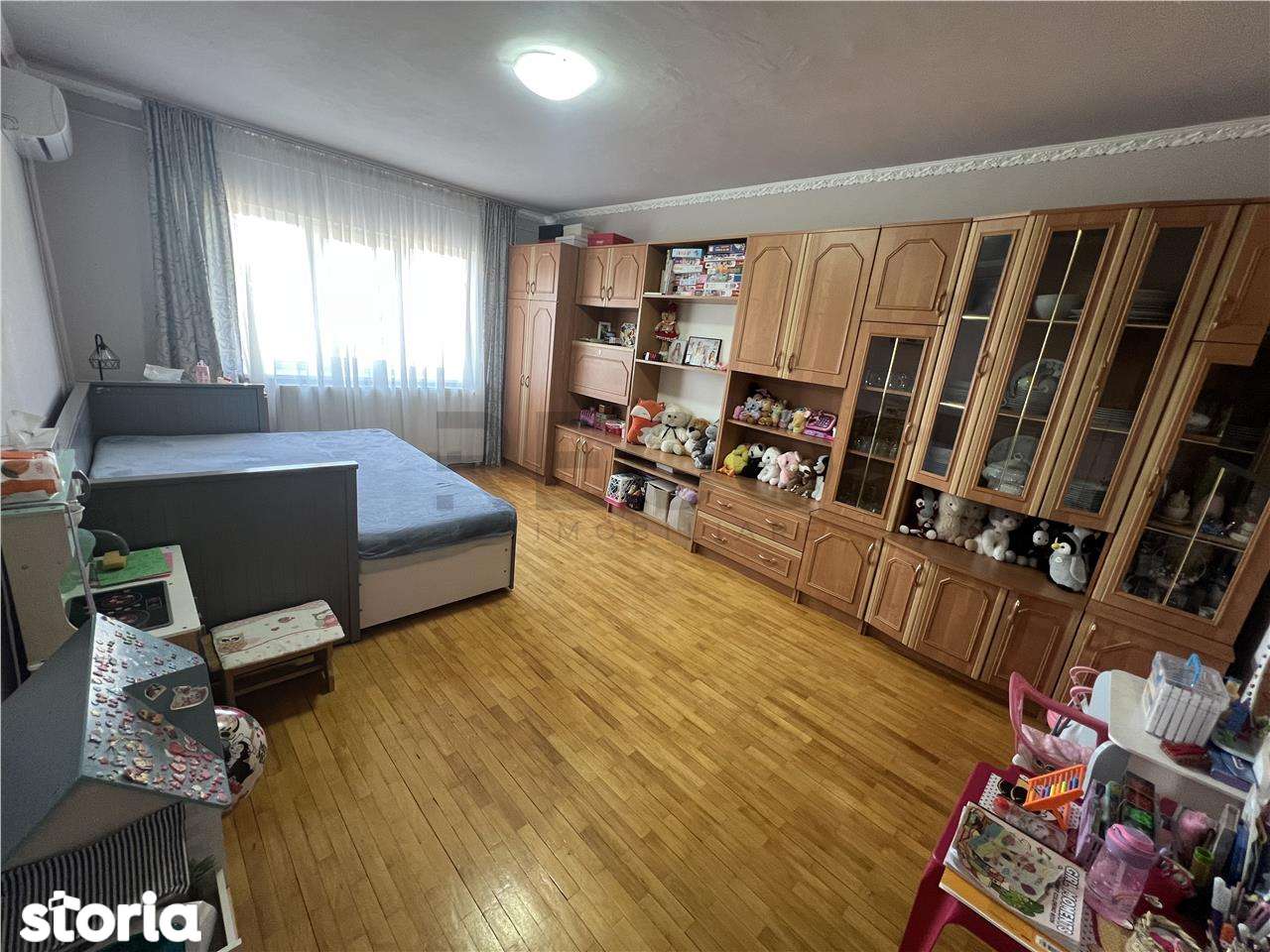- Комната захламлена личными вещами и игрушками, сложно оценить состояние