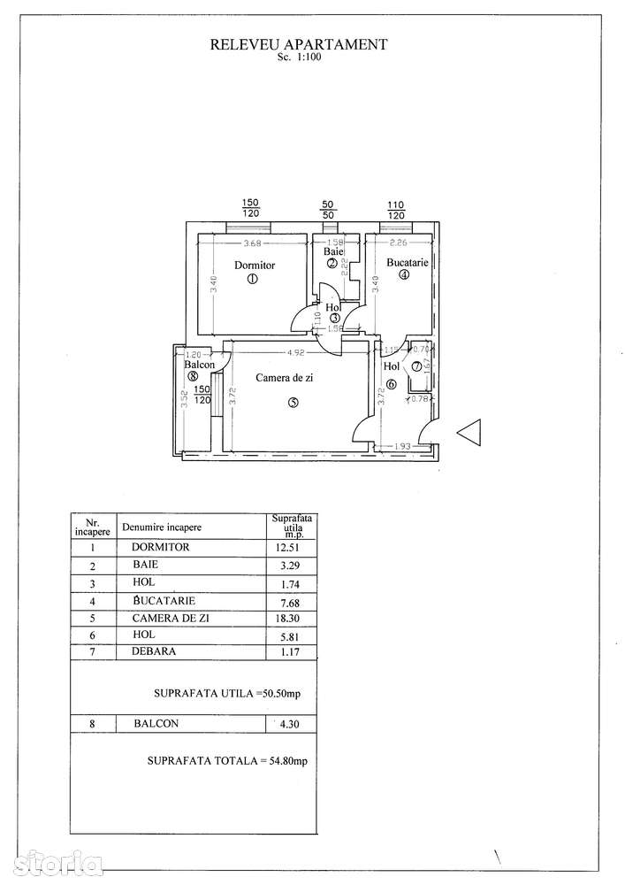 Продается 2-комнатная квартира, комфорт 1-й категории, с круговой планировкой на 5-м этаже 10-этажного здания, построенного в 1976 году из бетона с внешней изоляцией (пенополистирол 10 см). Технические характеристики (согласно замерам): Полезная площадь: 50,50 м² Общая площадь: 54,80 м² Гостиная: 18,30 м² Спальня: 12,51 м² Кухня: 7,68 м² Ванная: 3,29 м² Холлы + кладовая: 8,72 м² Балкон: 4,30 м² Оснащение и особенности: Собственный котел отопления Новый лифт (2026) Без улучшений (идеально для персонализации) Отличное местоположение: Зона Север – Касторе Прямо у входа в парк "Мештешугэреск" Остановки ОТЧ перед зданием Магазин Profi City на первом этаже ~300 м от торгового центра FunShop Park Плоешти Удобная парковка в районе здания Цена: 59 000 евро (торг приветствуется) Комиссия агентства: 2% Возможна покупка с использованием ипотечного кредита. Предоставляем бесплатное содействие в получении кредита.