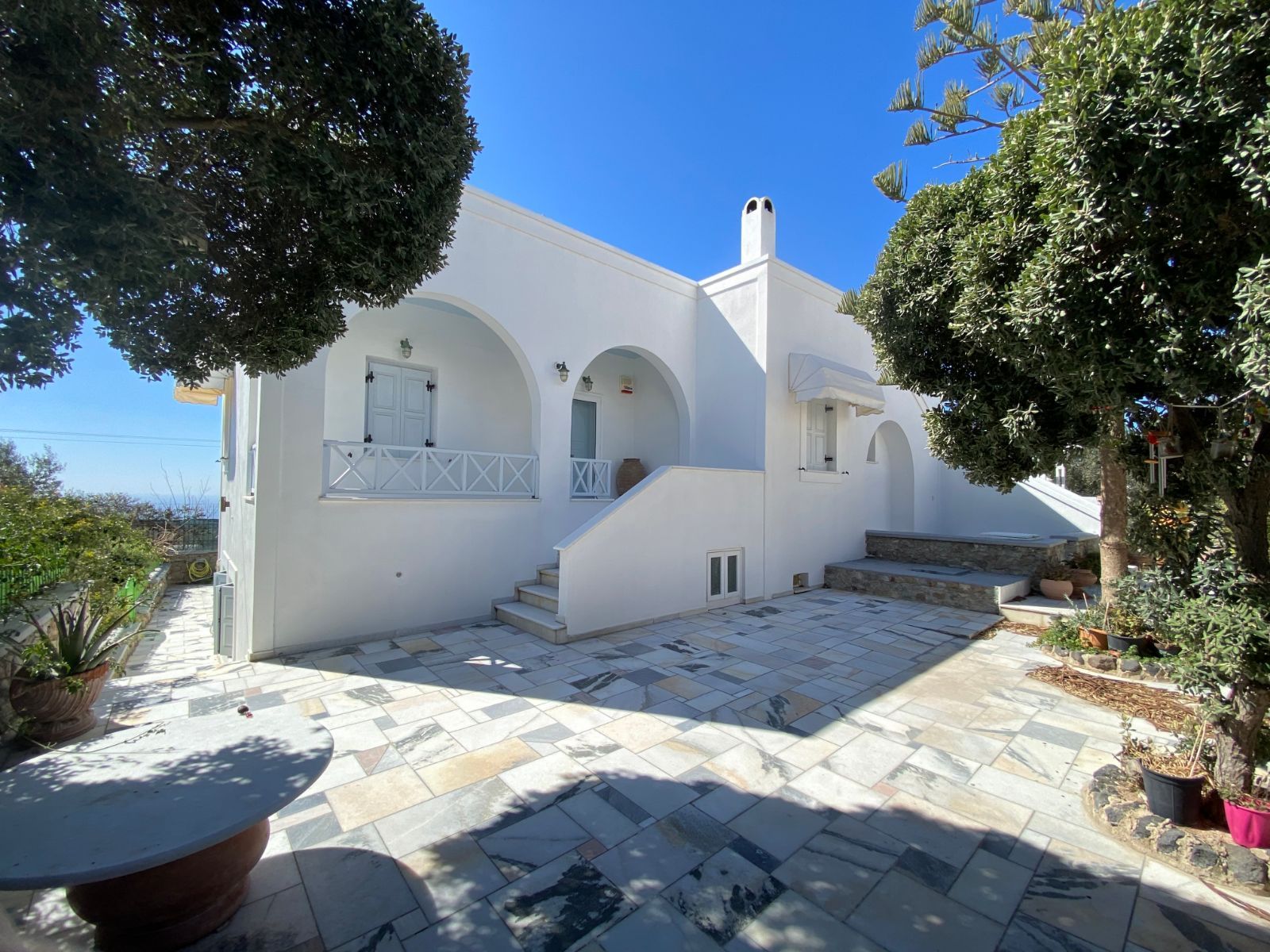 Отличный отдельный дом площадью 280 кв.м. в районе Thira Tower на участке площадью 1035 кв.м., состоящий из: А) Дом на уровне грунта площадью 120 кв.м. с тремя спальнями, 2 ванными комнатами, кухней, гостиной, столовой и просторными балконами. В доме имеются 2 камина и лифт, соединяющий с подземным крытым паркингом площадью 60 кв.м. Дом просторный и очень светлый с беспрепятственным видом на море. Б) Подземный дом площадью 30 кв.м. с одной спальней, ванной комнатой, гостиной и кухней с большим двором и видом на море. В) Подземный дом площадью 50 кв.м. с двумя спальнями, ванной комнатой, гостиной и кухней с большим двором и видом на море. Прилегающая территория включает мощеный двор и сад. Также имеется барбекю. На участке находится дополнительное здание площадью 280 кв.м. Свойство расположено в деревне в тихом районе, очень близко к площади (менее пяти минут пешком). Идеально подходит для жилого и туристического использования.