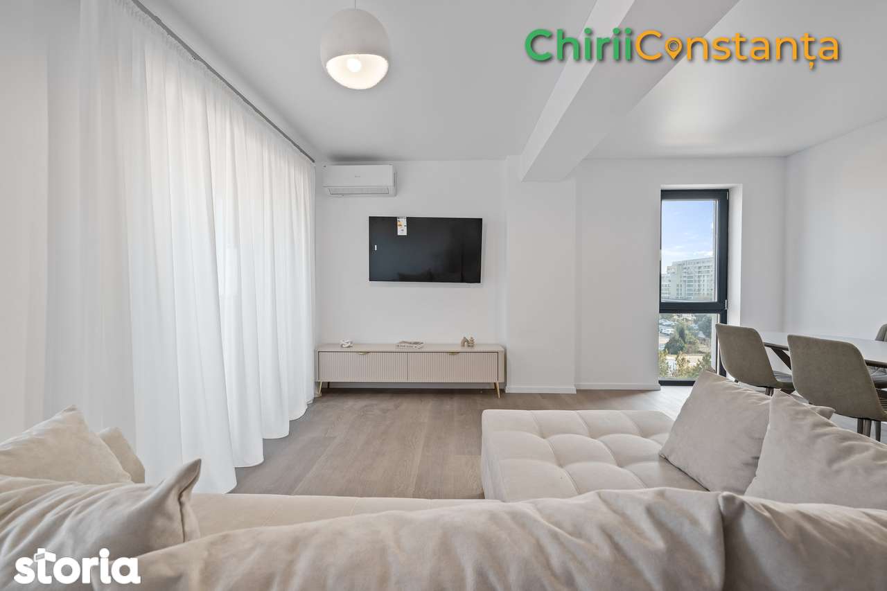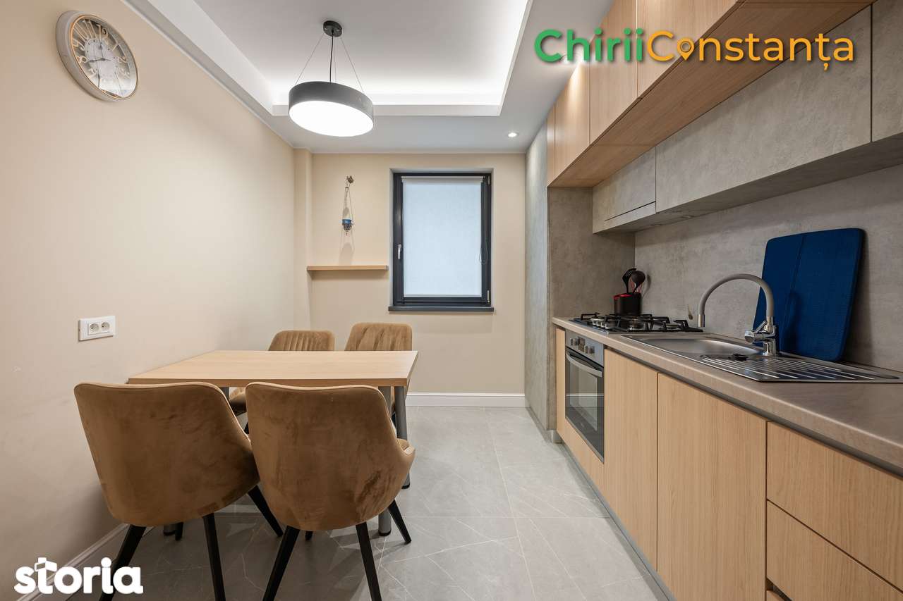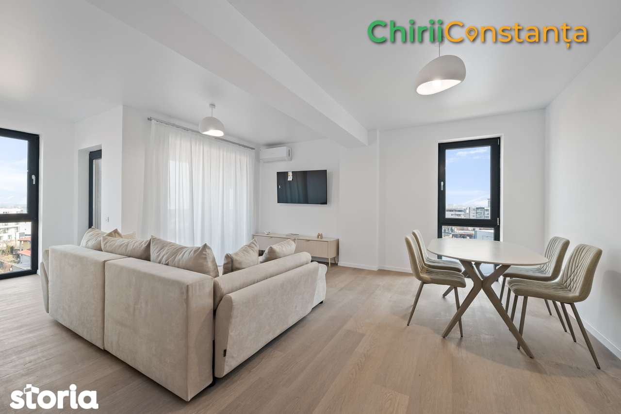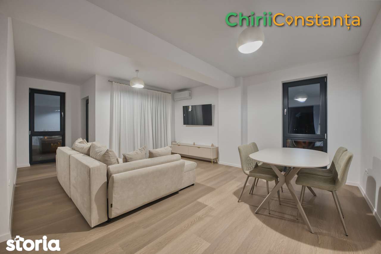 Предлагаем в аренду современный и просторный апартамент в новом доме, расположенный в тихом жилом районе рядом с круговым движением Tomis Plus – Palazu Mare. Полностью меблирован и оснащен новой бытовой техникой, апартамент идеален для тех, кто ищет комфорт и качество. Отличное местоположение – в непосредственной близости находятся магазины Kaufland, Mega Image, Profi, Carrefour, Selgros, гостиница Dedeman, а также 2 детских сада, школа Spectrum и Международный лицей. Всего в 5 минутах езды от университета и курорта Mamaia. Характеристики: 3 комнаты: гостиная с обеденной зоной, кухня, 2 спальни 2 ванные комнаты Премиум оборудование и отделка: - полностью меблирован и оснащен - собственный газовый котел и теплый пол - кондиционер - современная бытовая техника: холодильник, стиральная машина, плита, духовка - смарт-телевизор - современный дизайн, качественная отделка Домашние животные не допускаются.