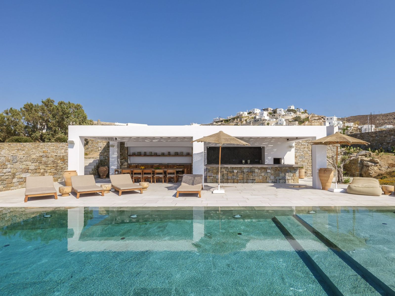 Расположенная в престижном районе Каналия, Миконос, эта редкая вилла на берегу моря предлагает исключительное сочетание приватности, архитектурной изысканности и непрерывных видов на закат над Эгейским морем. Построенная на просторном участке 4,000 м², недвижимость занимает 350 м² внутренней жилой площади и имеет эксклюзивный прямой выход на частный пляж — действительно редкая особенность на премиальном прибрежном рынке Миконоса. Полностью отреставрированная в 2023 году, резиденция готова к немедленному заселению и спроектирована для обеспечения бесшовного образа жизни в помещении и на открытом воздухе. Открытые территории являются главной изюминкой, включая полностью оборудованную летнюю кухню с барбекю, баром и расширенной барной стойкой, а также длинный деревянный обеденный стол на 12 гостей. Впечатляющий подогреваемый бассейн-инфинити тянется к горизонту, а специальная лаунж-зона с очагом расположена эффектно на краю утёса, обрамляя беспрепятственные виды на море и закат. Недвижимость разделена на отдельные строения для повышенной приватности. В центральном здании расположена дизайнерская кухня и просторные жилые зоны. На первом этаже находится изысканная главная спальня с ванной комнатой. Отдельное здание включает две главные спальни с ванными, дополненные подогреваемым джакузи и приватной обеденной зоной на открытом воздухе. Дополнительные удобства включают ТВ-комнату, просторную гостевую спальню с ванной, специальную йога-комнату с мини-кухней, парную и полностью оборудованную прачечную. Полы с подогревом обеспечивают комфорт круглый год. Идеально подходящая как для частного семейного отдыха, так и для высокодоходной аренды класса люкс, эта выдающаяся приморская недвижимость сочетает первоклассное расположение, премиальные удобства и вневременную кикладскую элегантность. Недвижимость также предлагает четыре крытых парковочных места. Миконос — остров, расположенный в Южных Эгейских островах и входящий в состав Кикладских островов. Остров является одним из самых развитых туристических направлений в мире и отличается насыщенной и оживлённой ночной жизнью. Уникальные особенности: Миконос — космополитичный и гламурный остров, привлекающий большое количество греческих и иностранных знаменитостей, выбирающих остров для летнего отдыха. Характерными чертами Миконоса являются его живописная красота, которой можно наслаждаться, прогуливаясь по его улочкам, прекрасные пляжи, роскошные отели и рестораны. Особенность острова в том, что он удовлетворяет всем требованиям, предлагая любителям ночной жизни множество баров, но также позволяя каждому посетителю открыть богатую историю острова, достопримечательности и археологические памятники. Доступность: До Миконоса можно добраться из портов Рафина и Пирей, паромы отправляются несколько раз в день, а в летний сезон как минимум три парома утром и один или два зимой. Также на Миконос можно добраться самолётом, так как на острове есть аэропорт с многочисленными рейсами, работающими в основном в летний период при высоком спросе. Инвестиционная возможность: Покупка недвижимости на Миконосе — это крупная инвестиция с постоянным и растущим инвестиционным интересом, поскольку остров привлекает туристов и инвесторов со всего мира.
